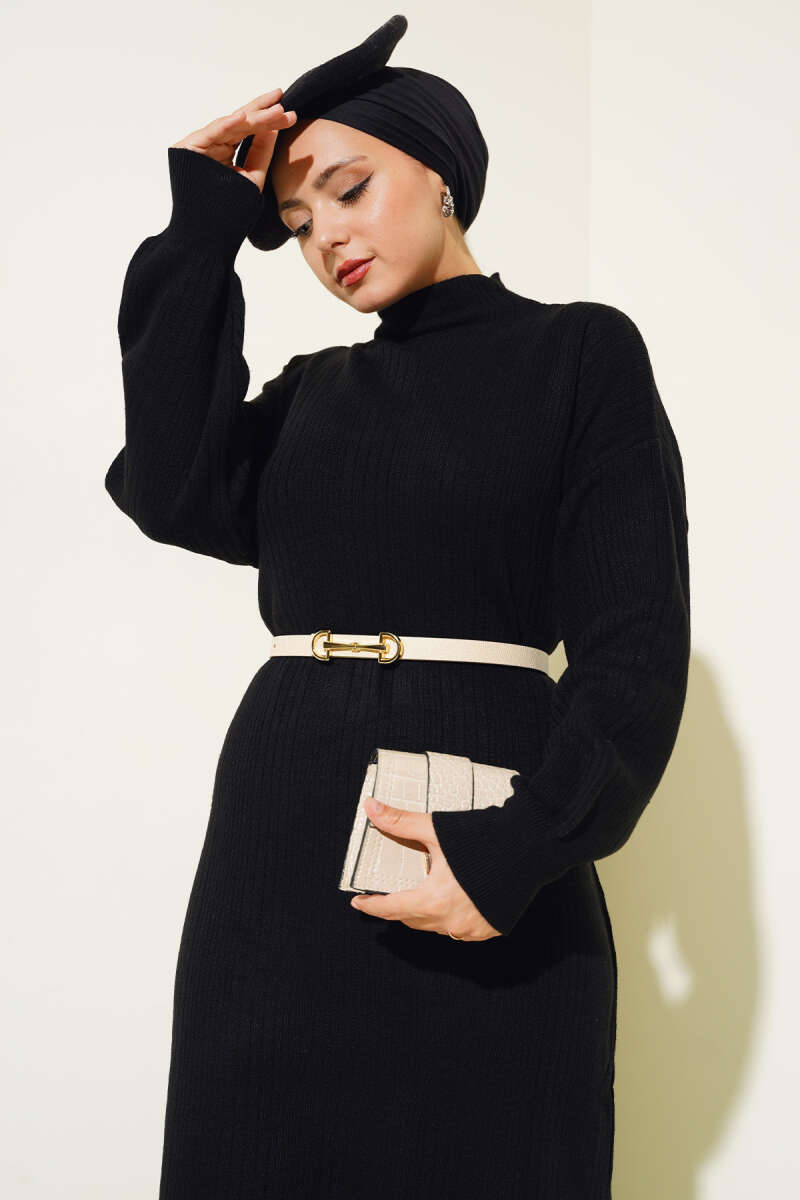 Gömlek Yaka Düğmeli Triko Elbise Siyah