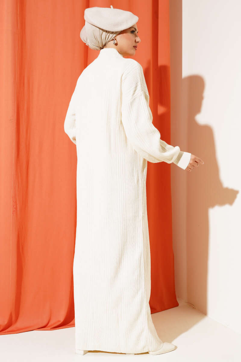 Basic Çift Cepli Uzun Triko Hırka Bej