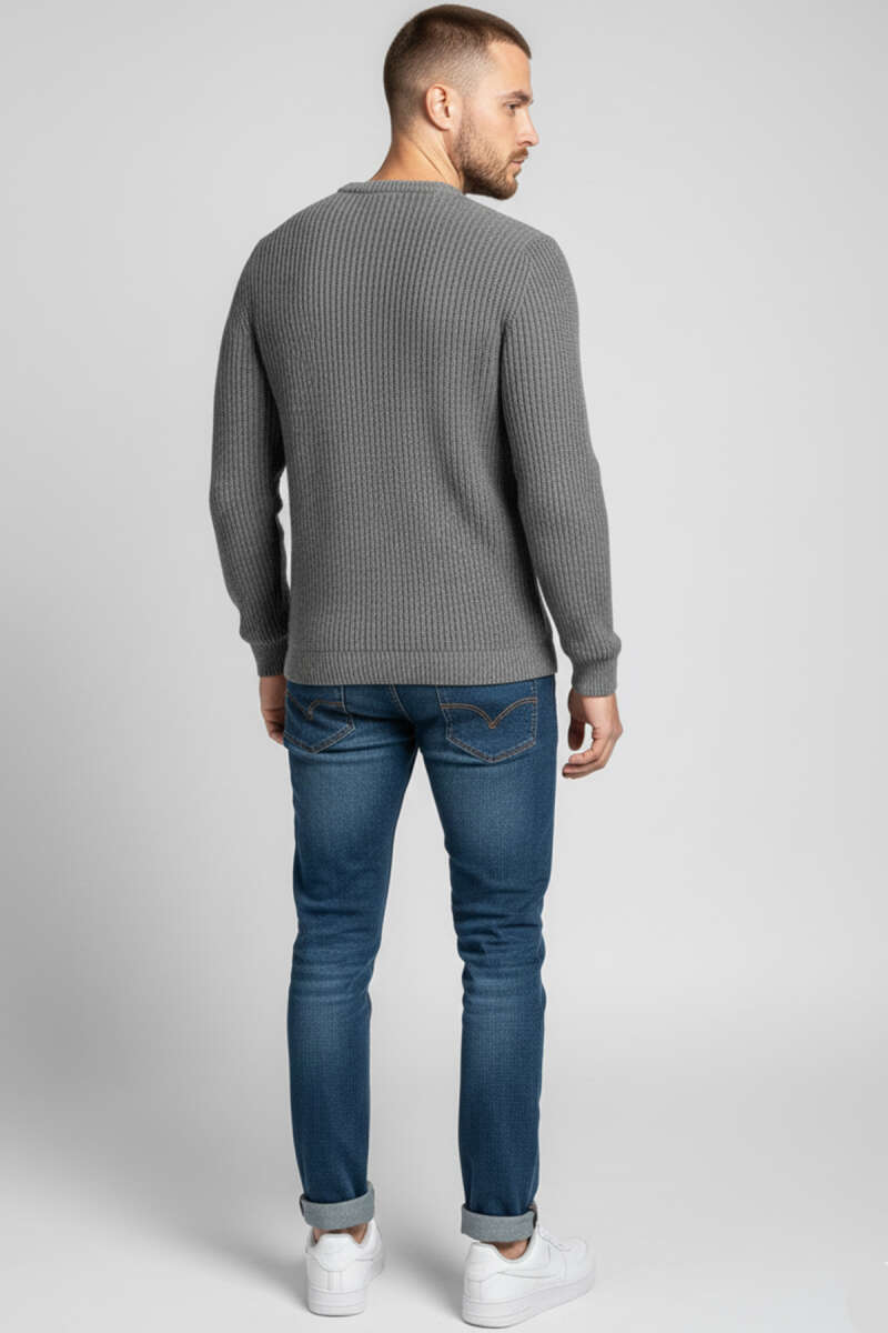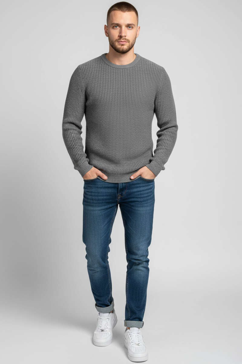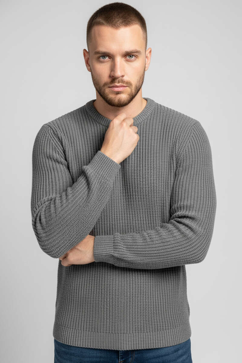 Bisiklet Yaka Yön Desen Erkek Triko Kazak İndigo