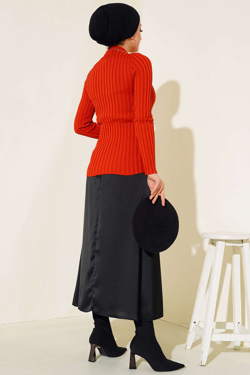 Yeni sezon triko kazak şık duruşuyla beğenileri üzerinde toplamaktadır. Esnek yapısı sayesinde vücudu sarana triko kazak yarım balıkçı yakadır. Renk çeşitleri mevcuttur. Broş aksesuar olarak kullanılmıştır.