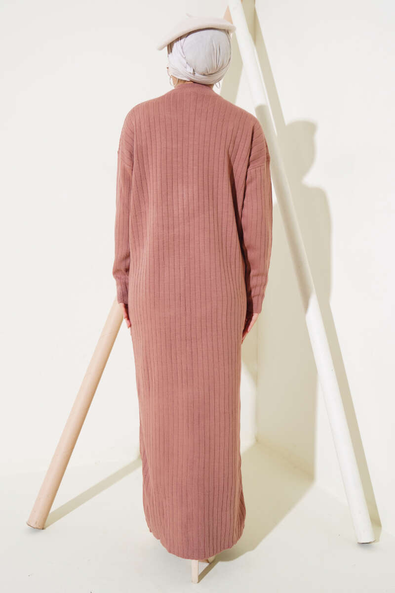 Gömlek Yaka Düğmeli Triko Elbise Kahve