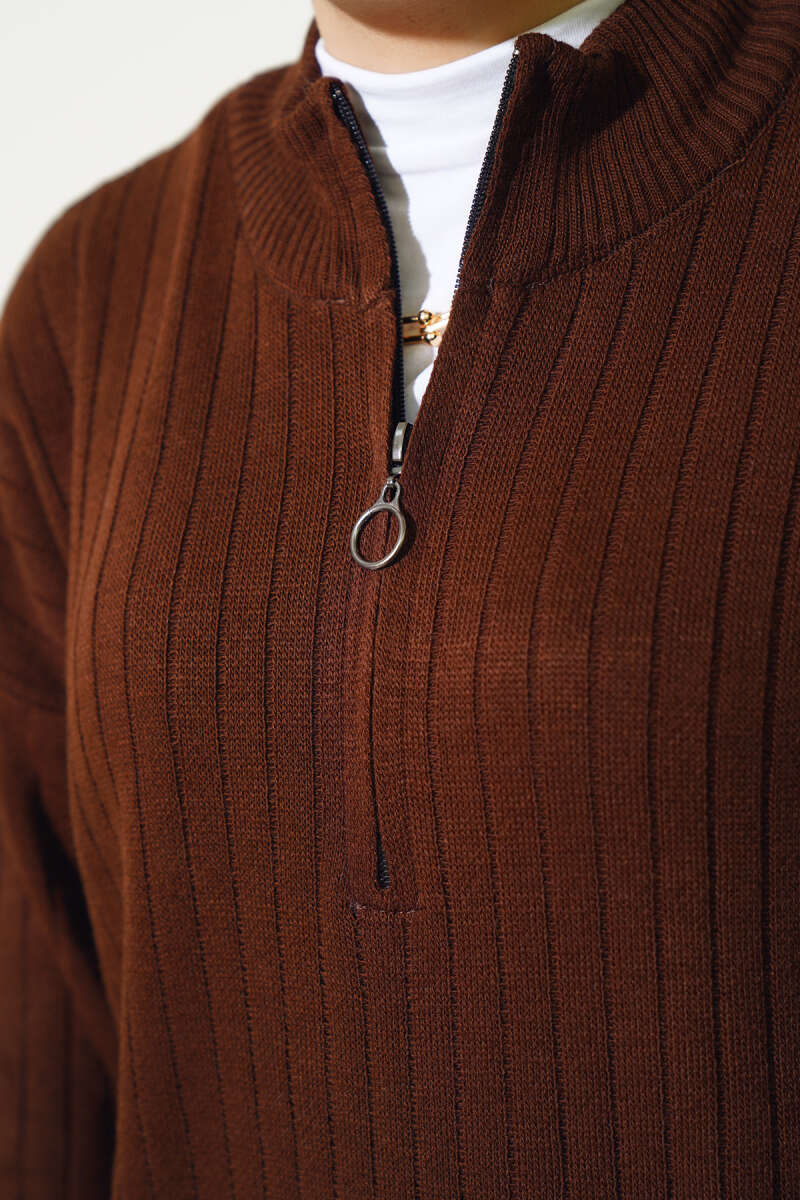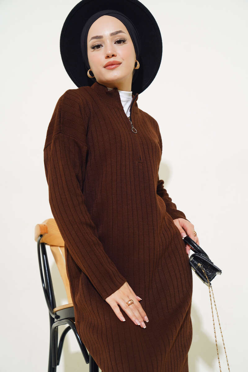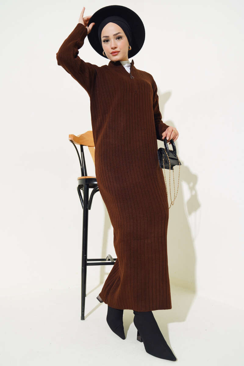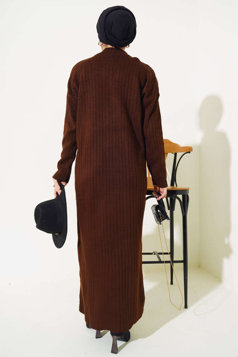 Gömlek Yaka Düğmeli Triko Elbise Kahve
