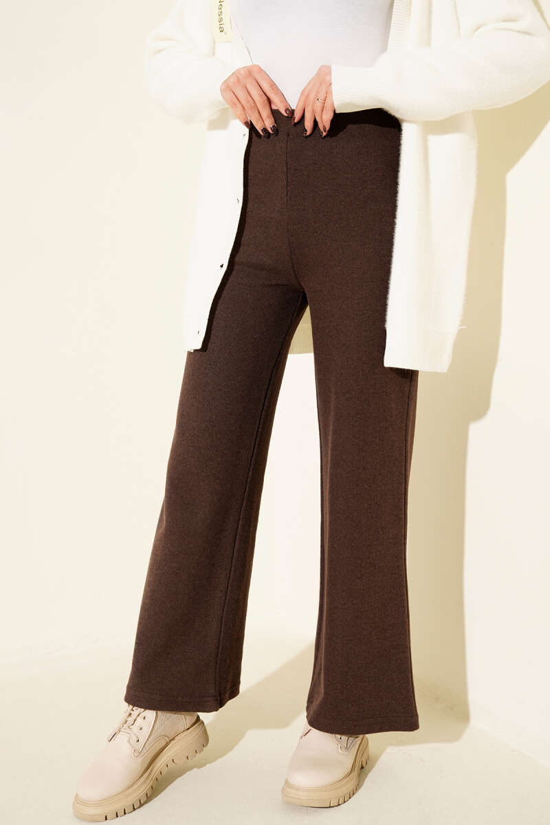 Geniş Paçalı Palazzo Kumaş Pantolon Kahve