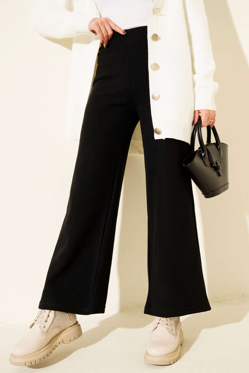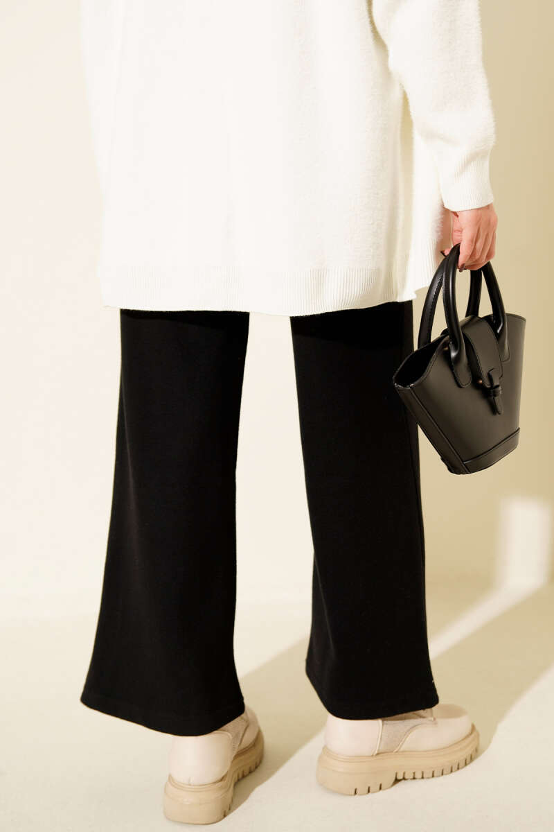 Bol Paça Triko Pantolon Siyah