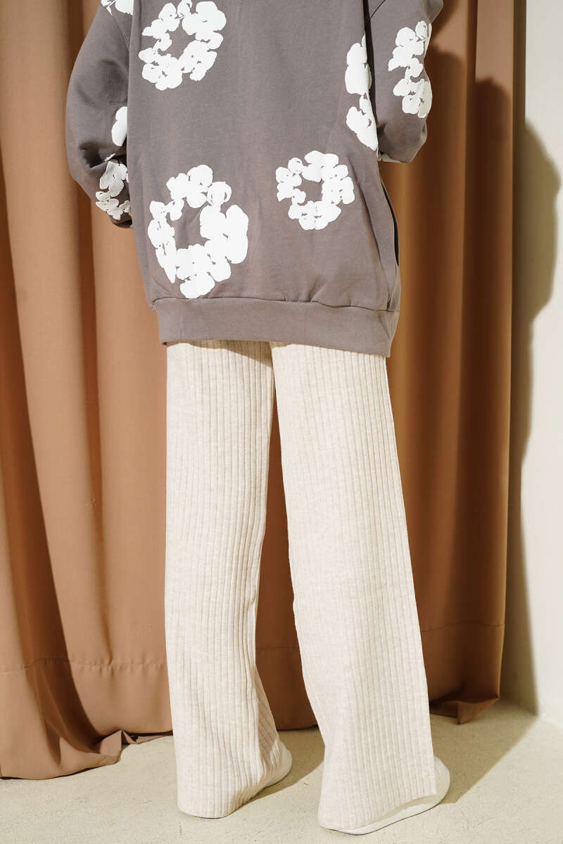 Yatay Çizgili Düşük Omuz Triko Tunik Gri