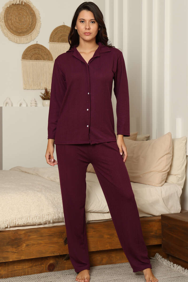 Fitilli Gömlek Yaka Pijama Takımı Mürdüm