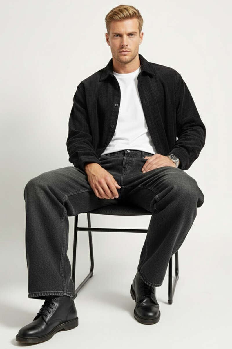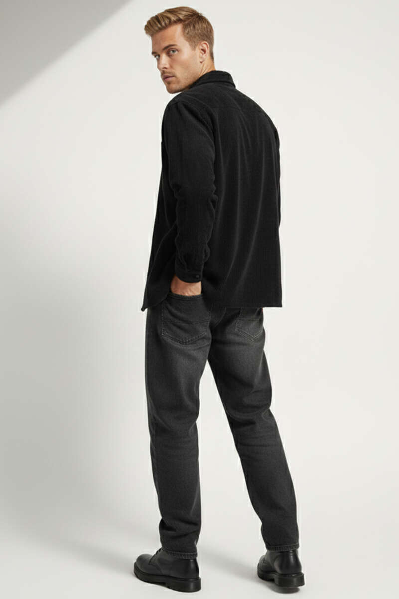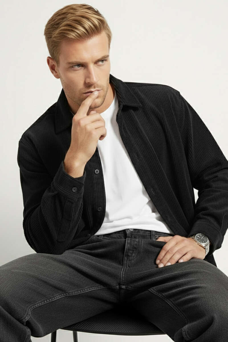 Bilek Manşet Detaylı Erkek Gömlek Siyah