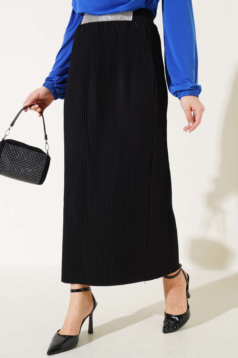 Fırfırlı Pileli Bel Lastikli Etek Lacivert
