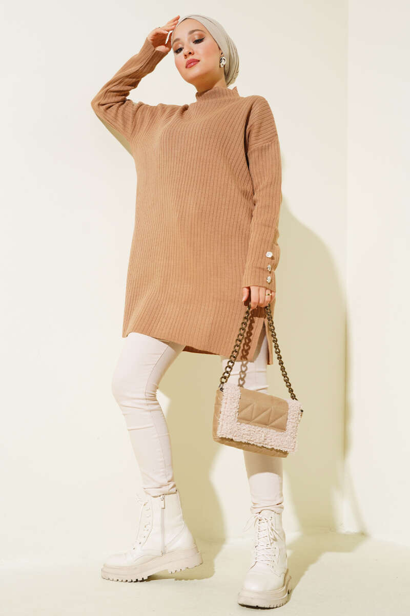 Basic Oversize Triko Tunik Haki