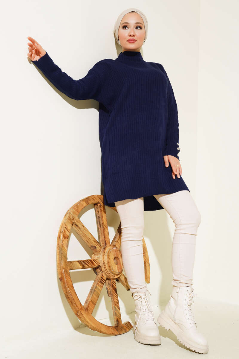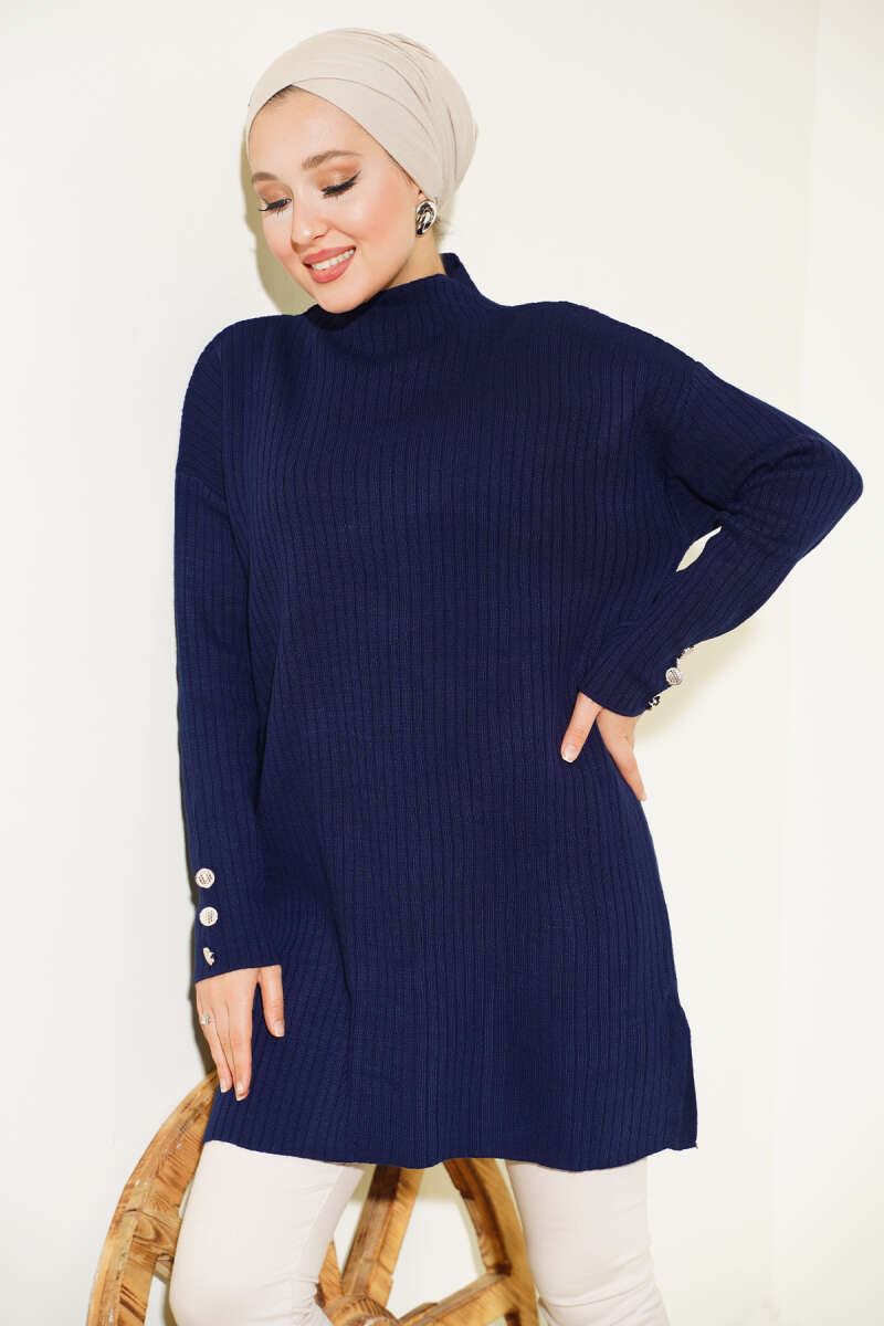 Basic Oversize Triko Tunik Lacivert