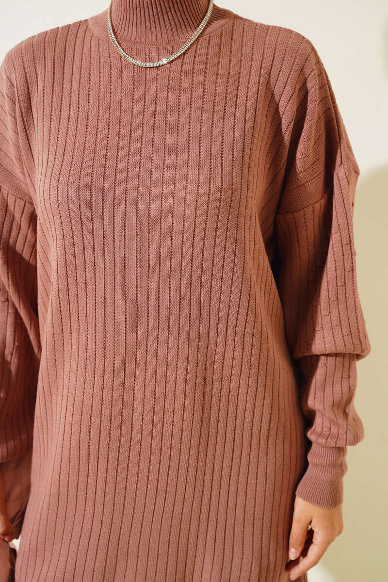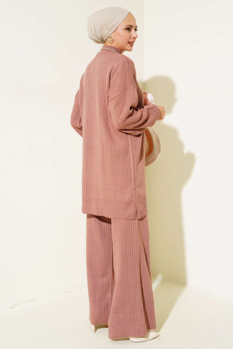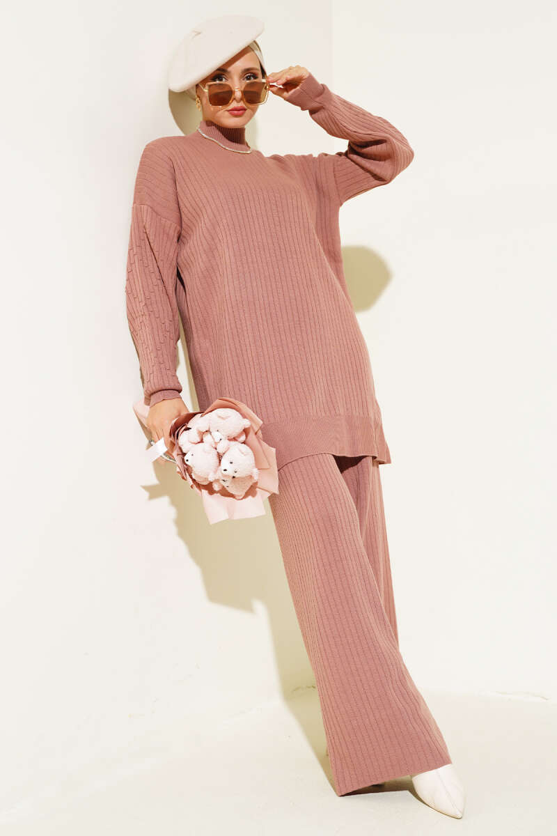 Dikiş Detaylı Basic Triko İkili Takım Vizon