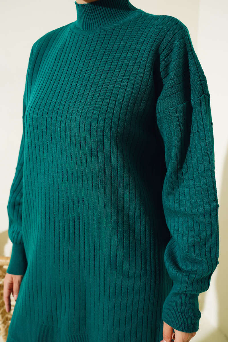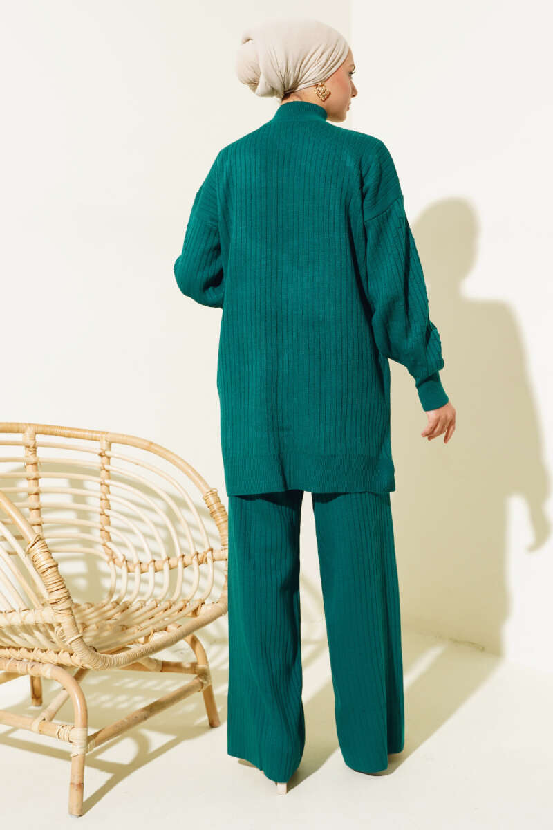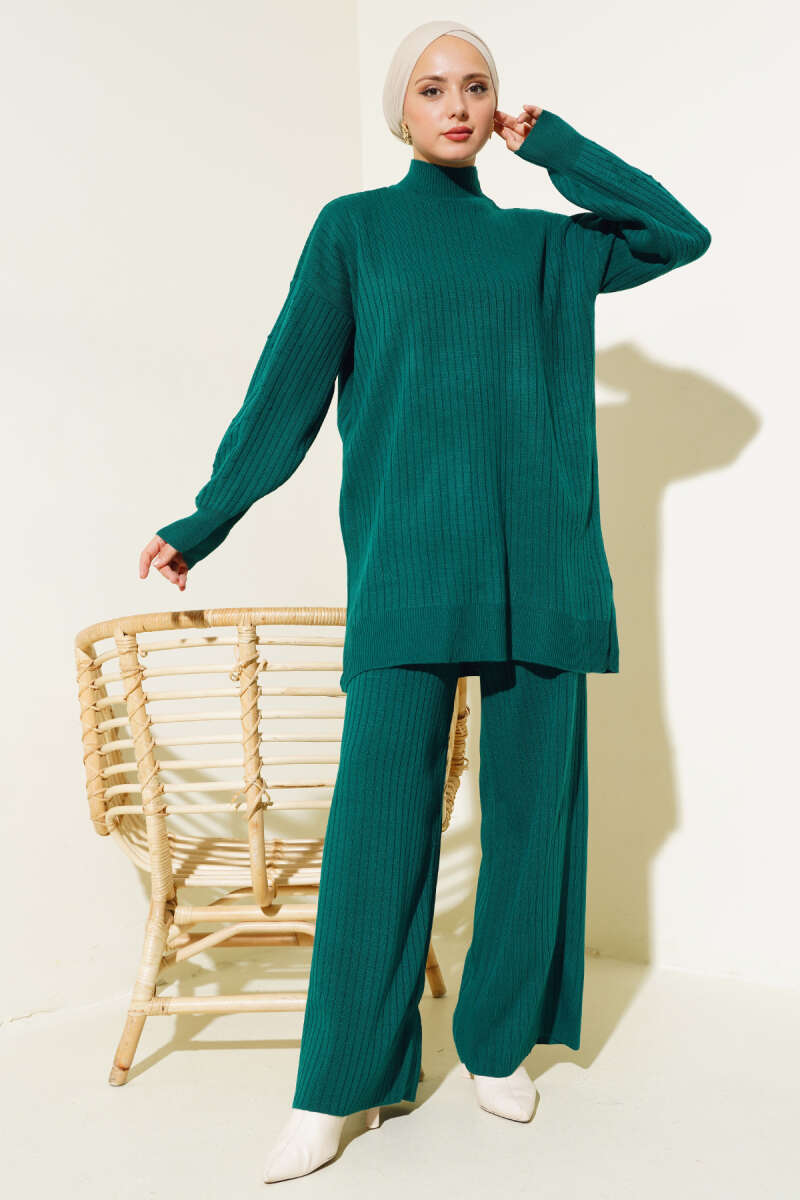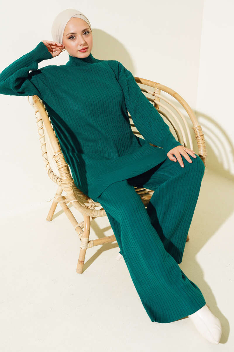 Fitilli Kol Kabartmalı Triko İkili Takım Nefti