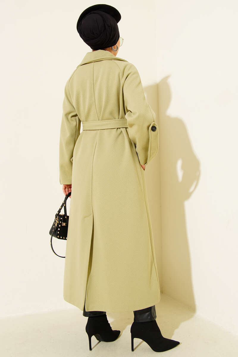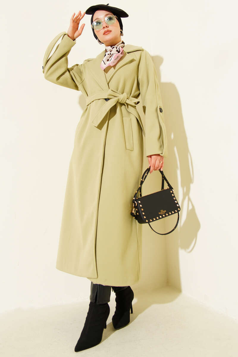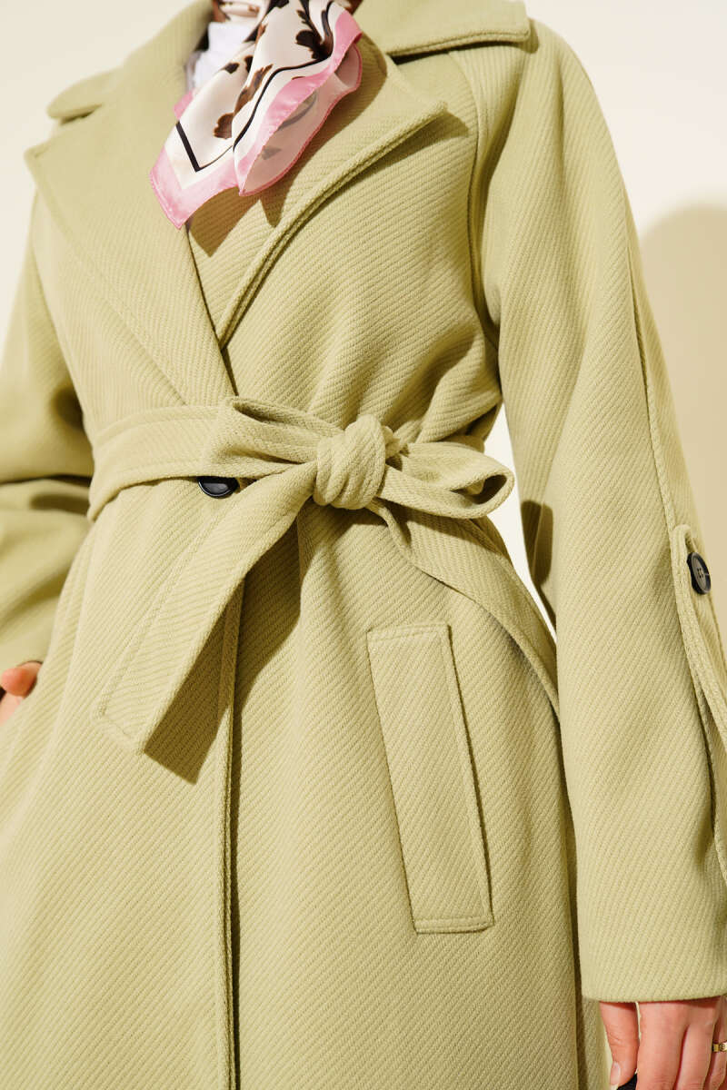 Fitilli Kuşaklı Kaşe Kaban Mint