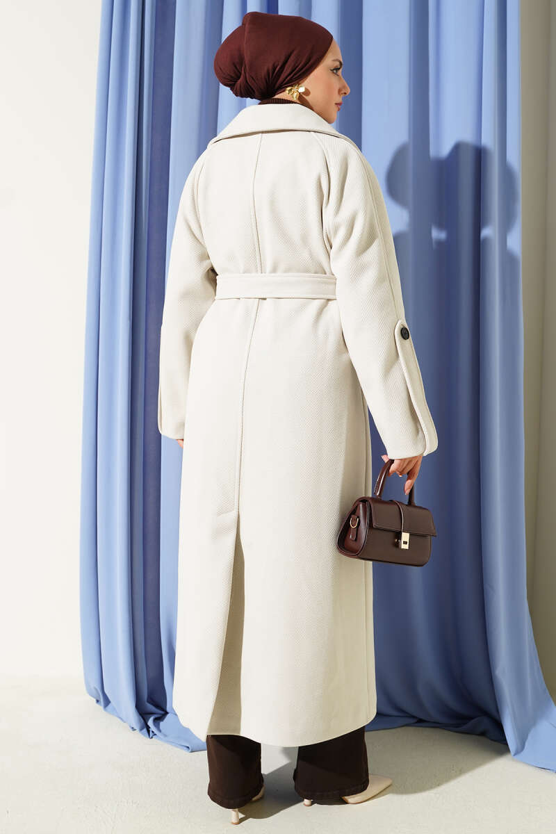Yarasa Kol Kemerli Buklet Ceket Beyaz