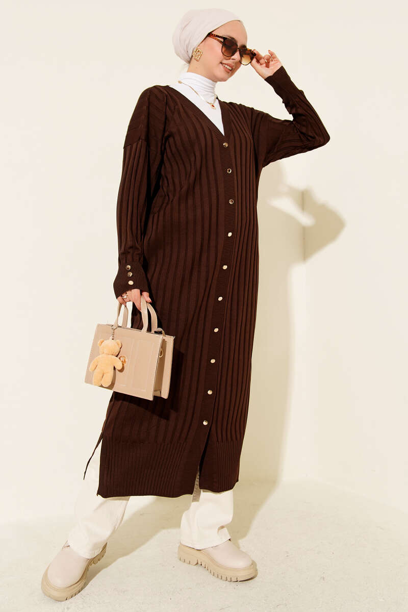 Saç Örgülü Düğmeli Triko Hırka Latte