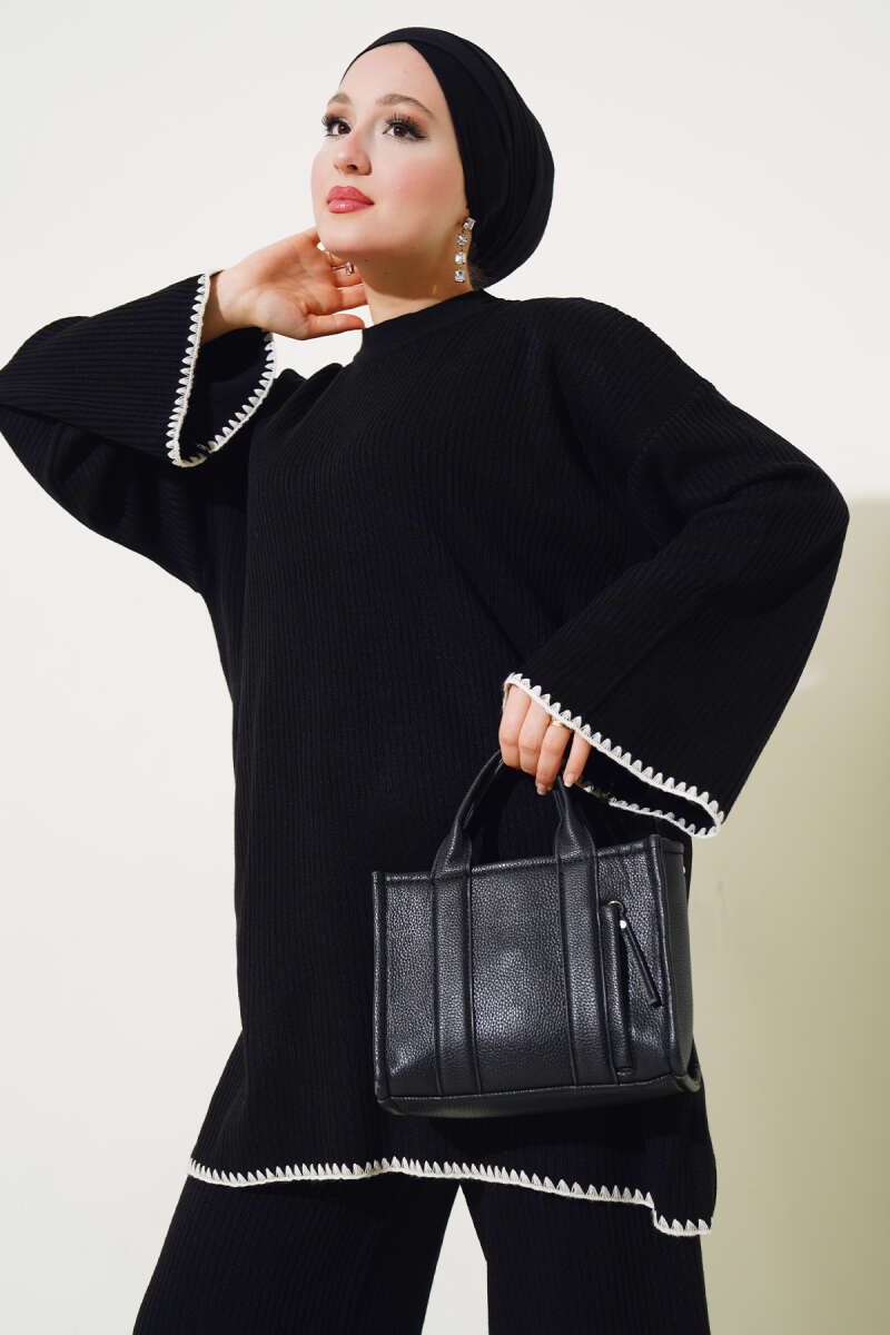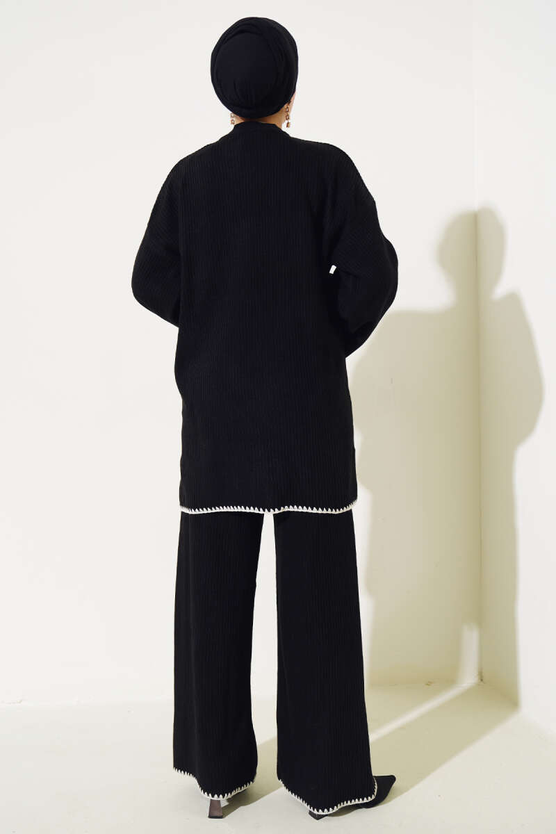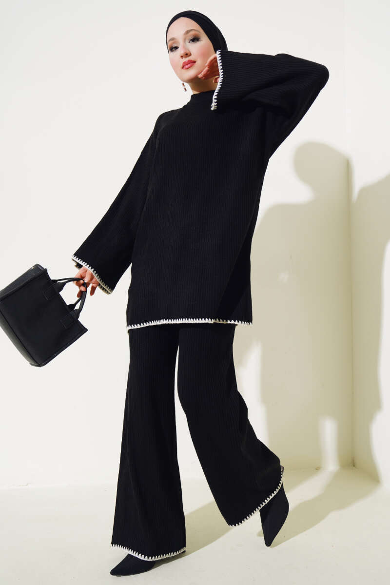 Dikiş Detaylı Basic Triko İkili Takım Siyah
