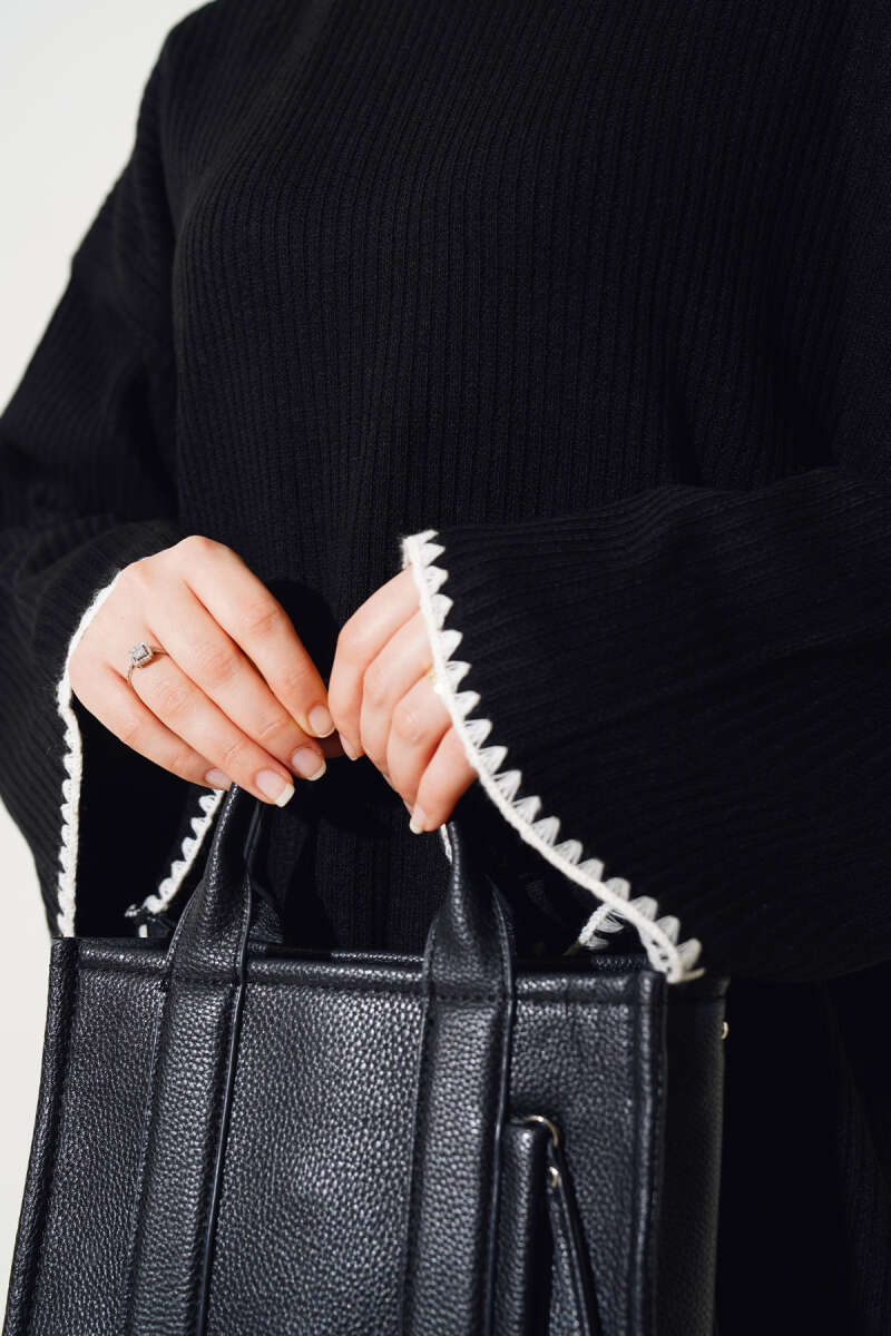 Çoban Dikiş Detaylı Triko Tunik Siyah