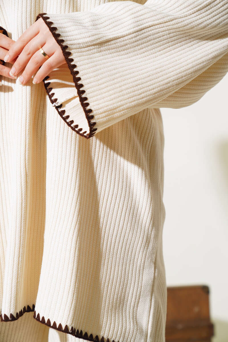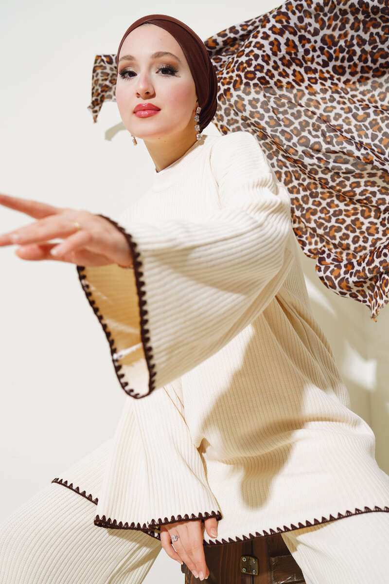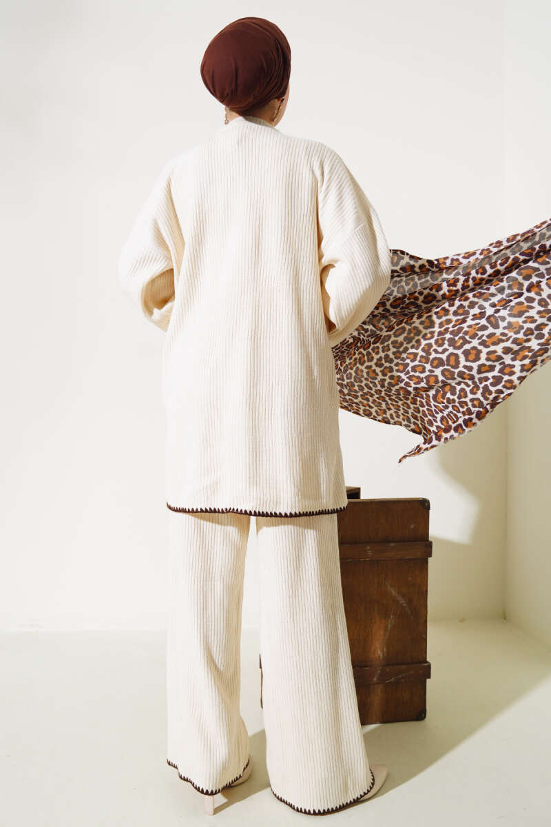 Dikiş Detaylı Basic Triko İkili Takım Bej