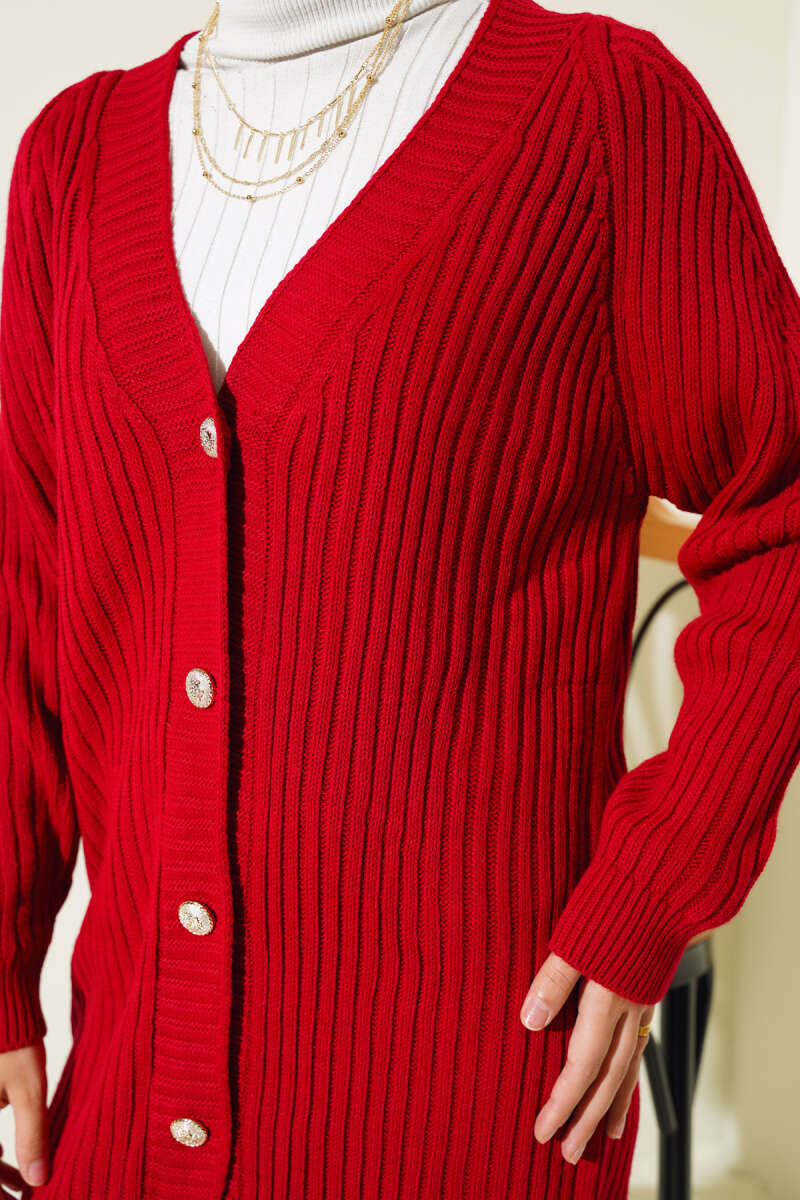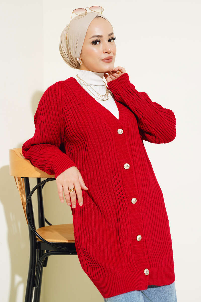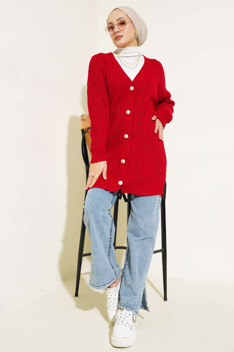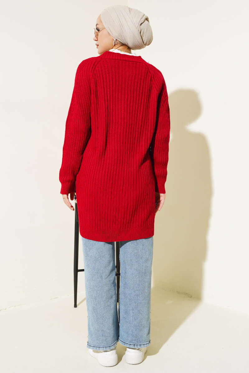 Pirinç Örgü Basic Triko Hırka Nar Çiçeği