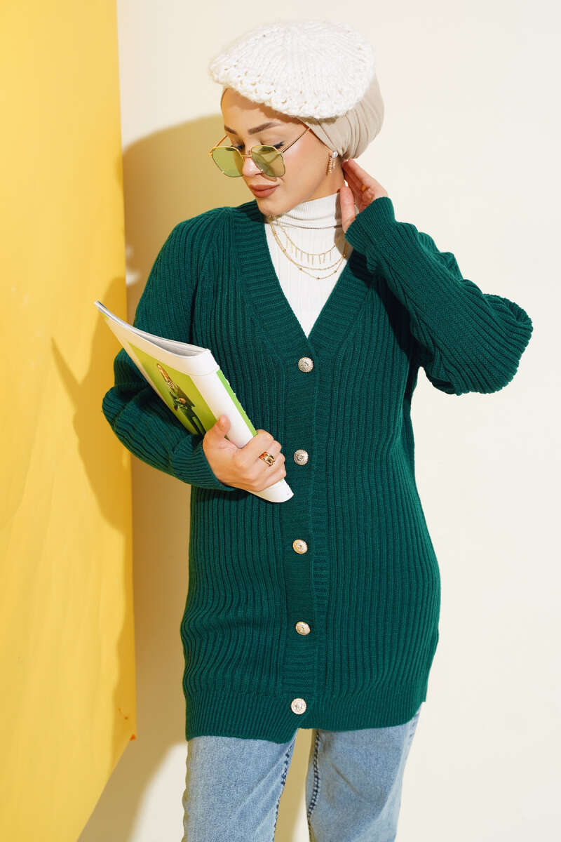 Pirinç Örgü Basic Triko Hırka Nar Çiçeği