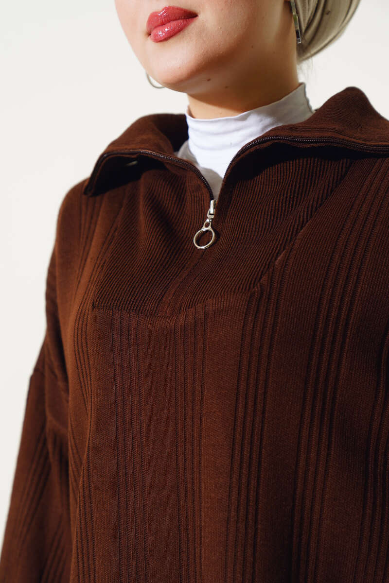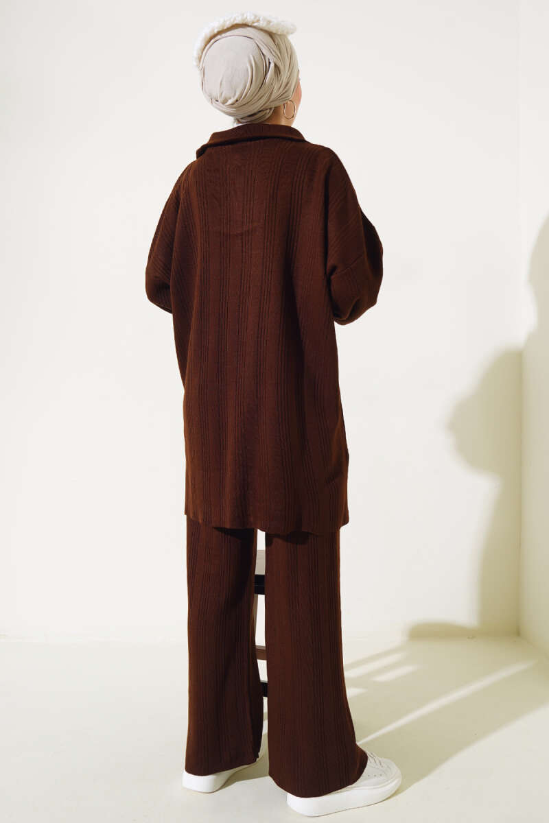 Balon Kol Balıkçı Yaka Triko İkili Takım Kahve