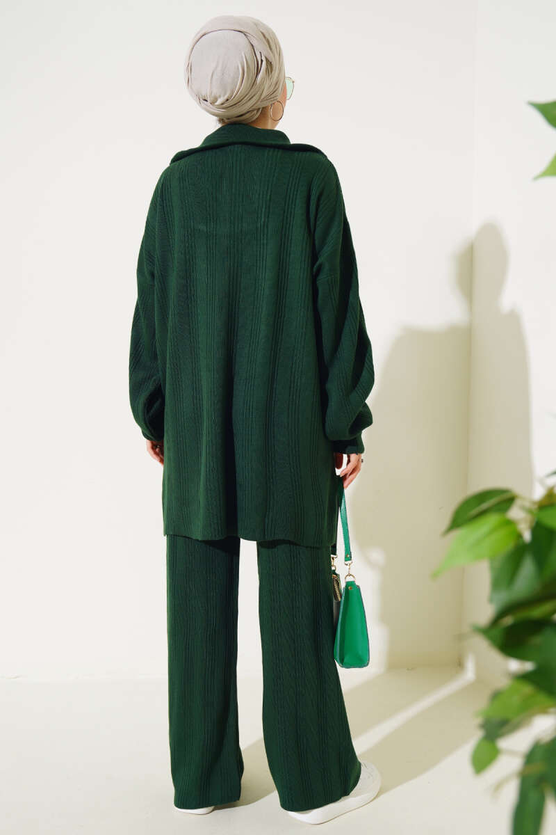 Taşlı Baklava Desen Triko İkili Takım Zümrüt
