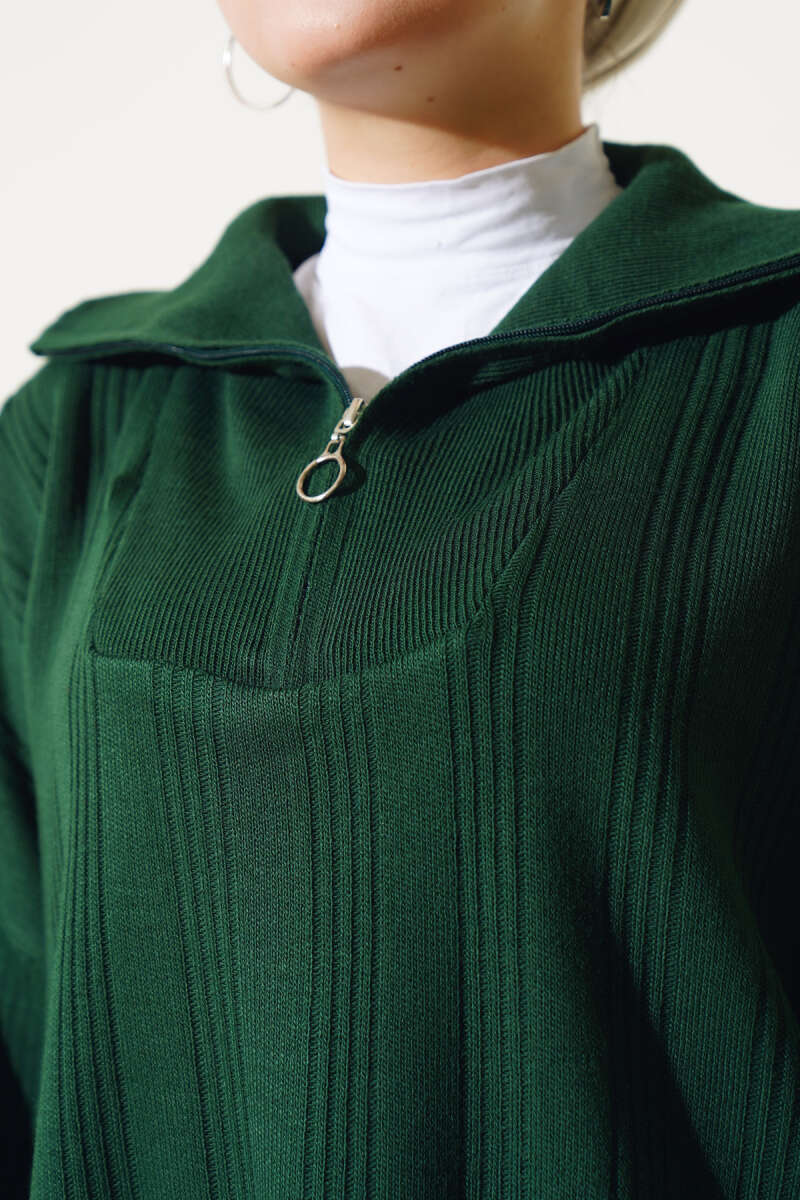Balon Kol Balıkçı Yaka Triko İkili Takım Yağ Yeşili