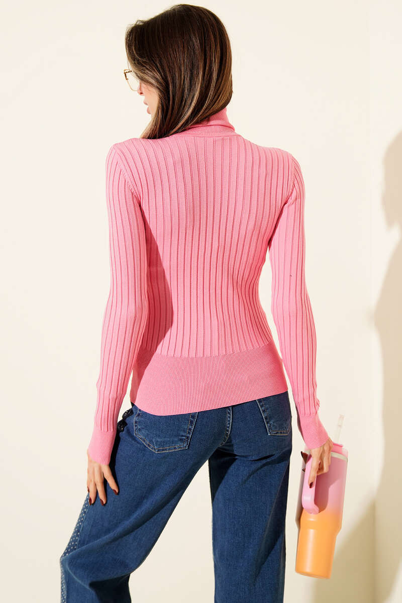 Fitilli Tam Balıkçı Yaka Triko Kazak Turkuaz