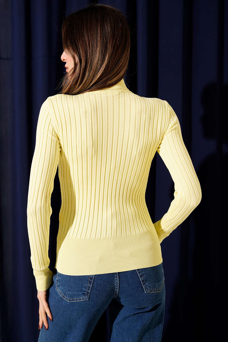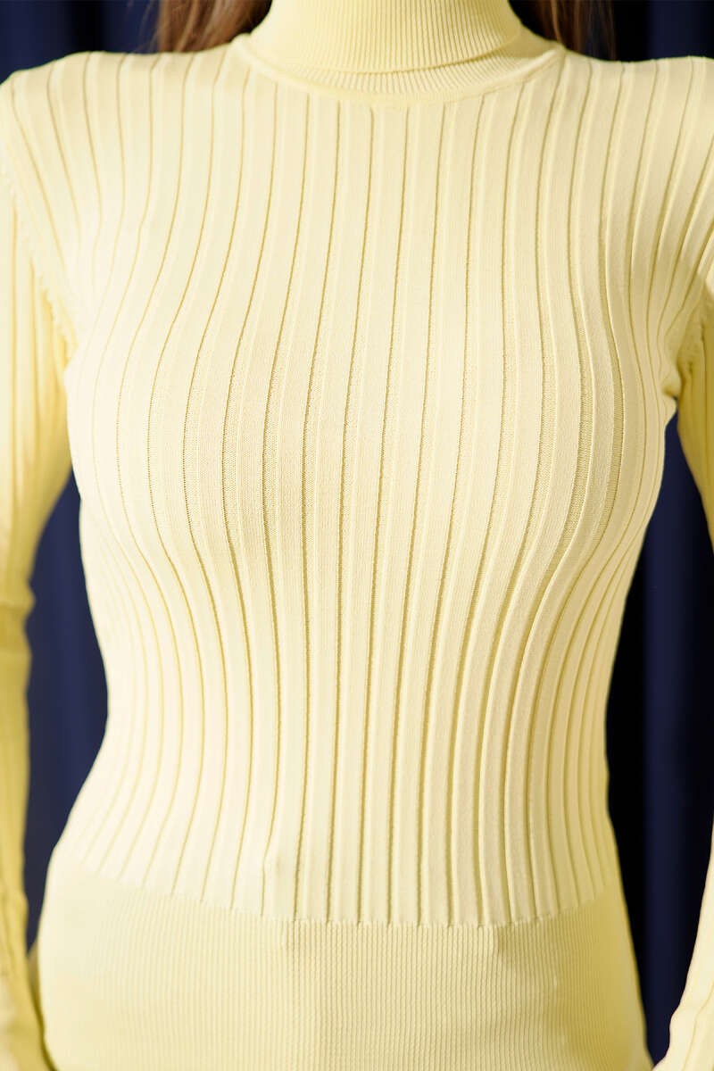 Fitilli Tam Balıkçı Yaka Triko Kazak Ekru