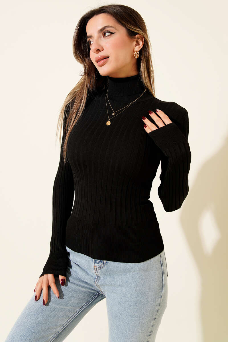 Fitilli Tam Balıkçı Yaka Triko Kazak Petrol