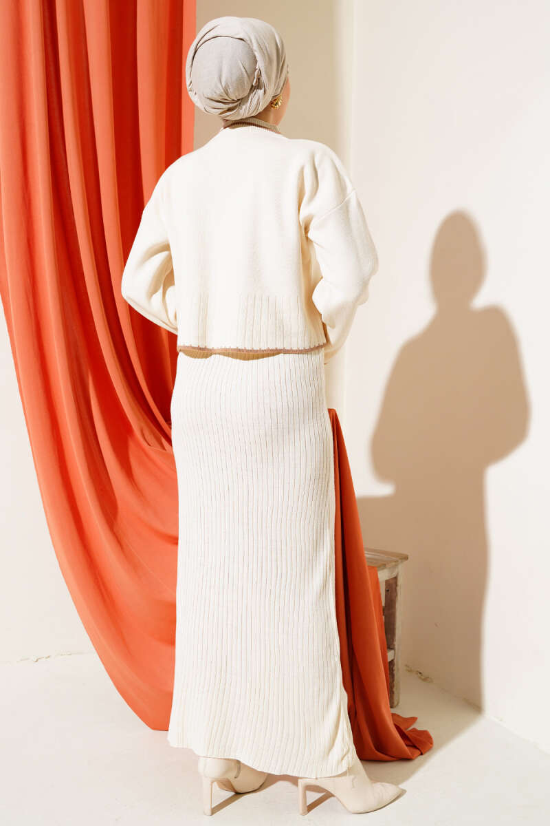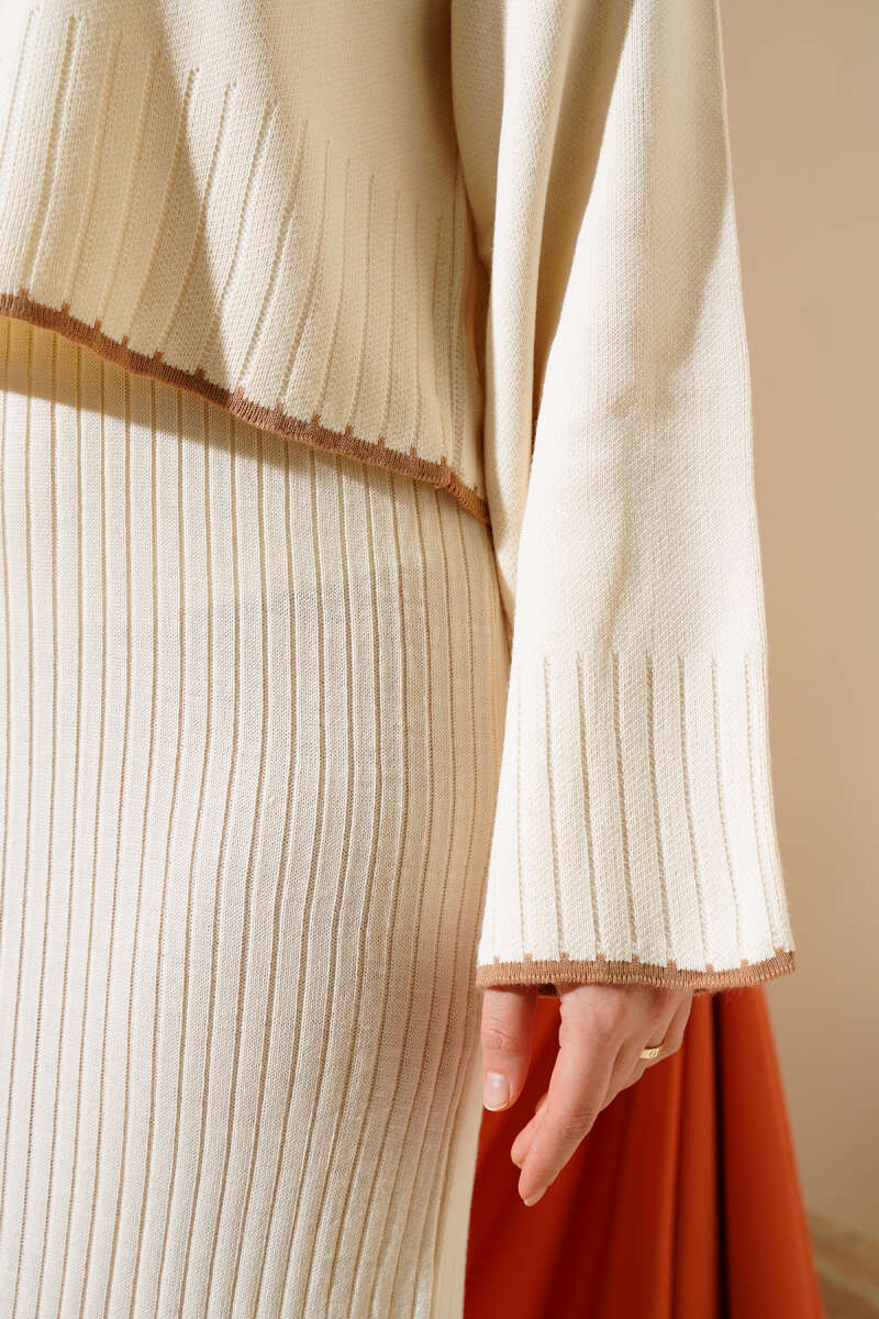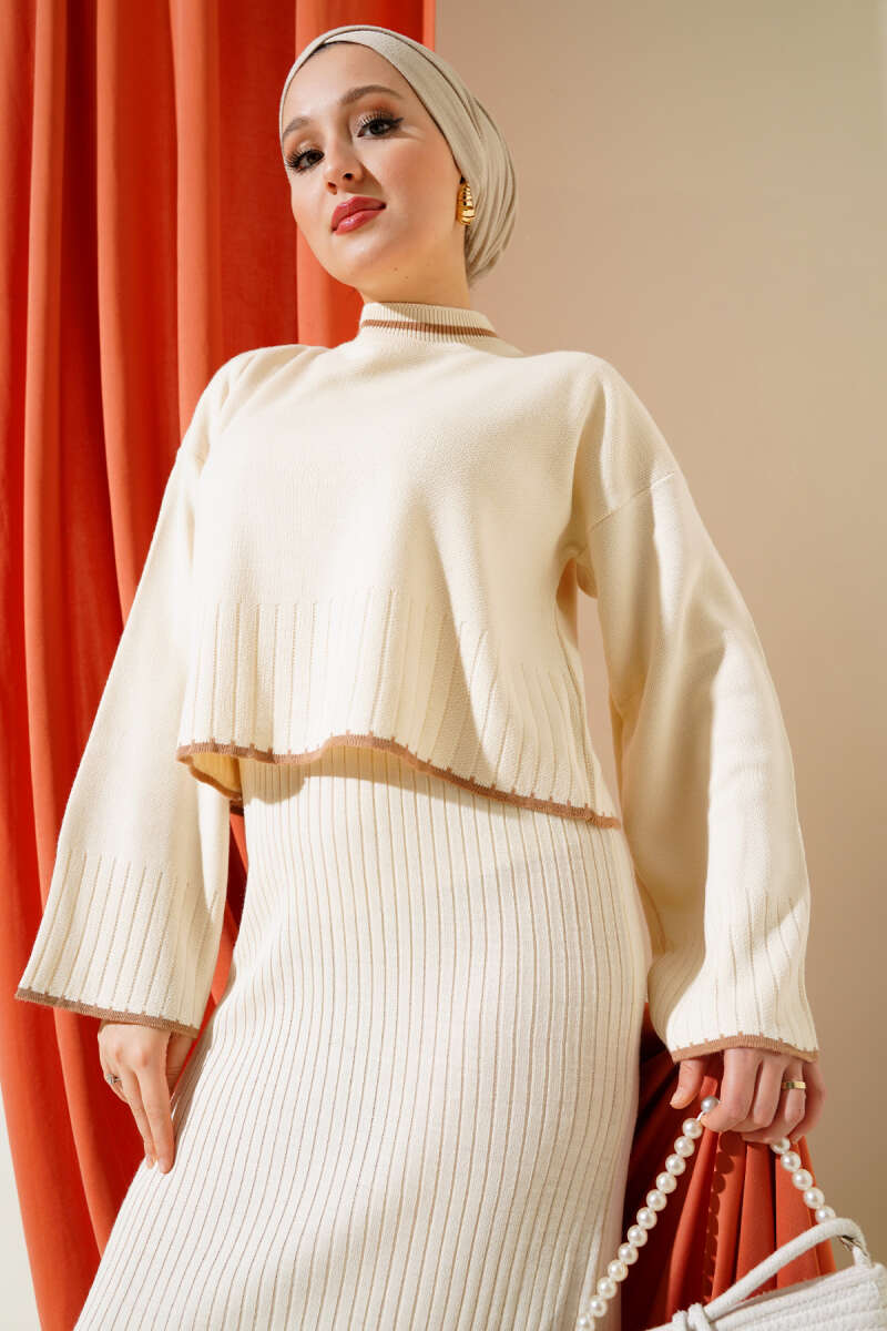 Balıkçı Yaka Fitilli Triko İkili Takım Vizon
