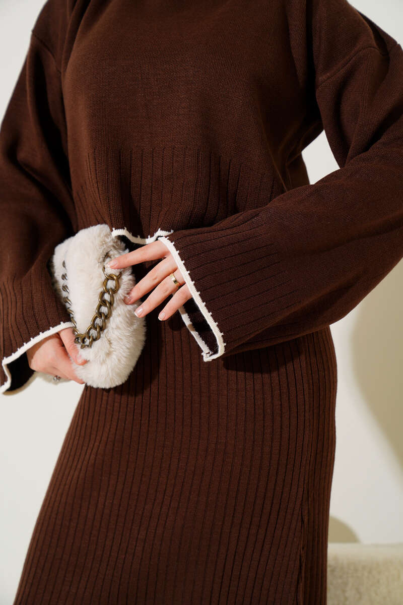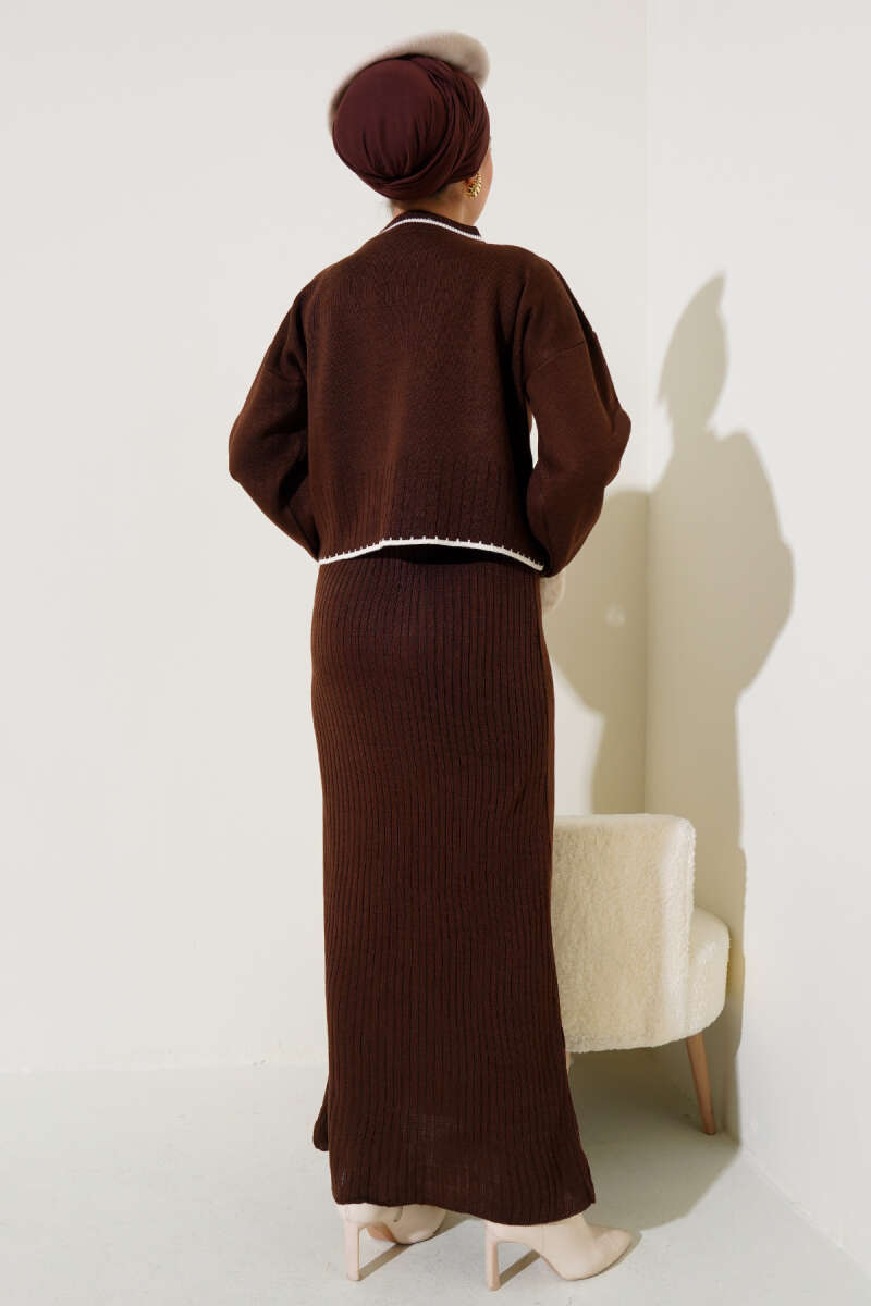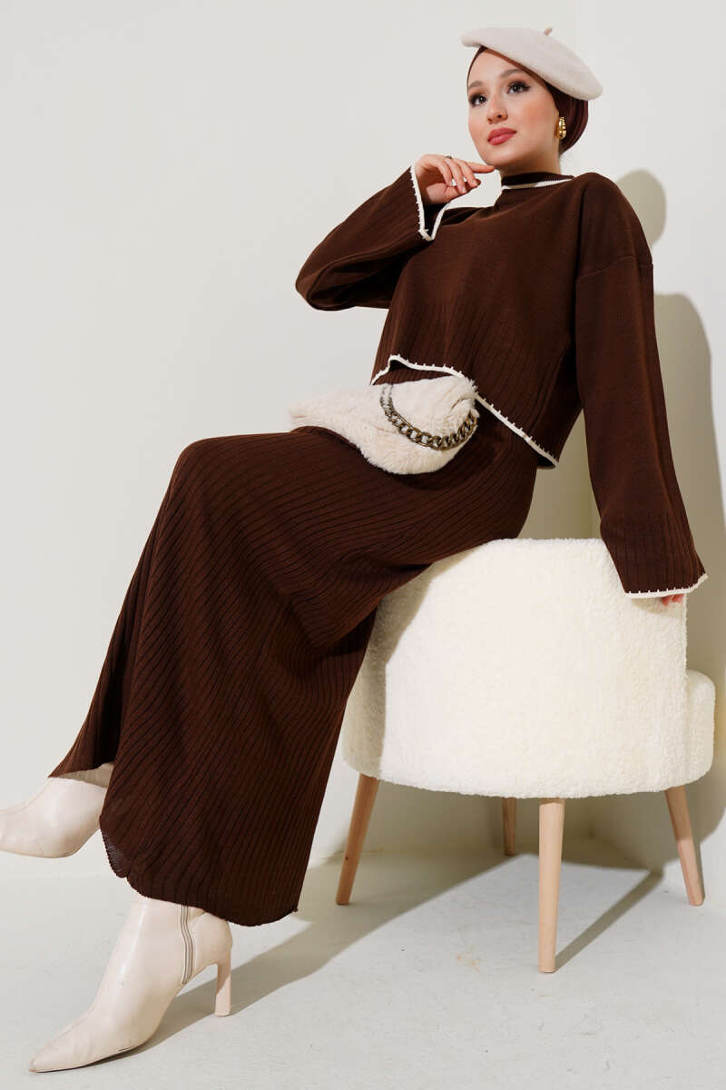 Balıkçı Yaka Fitilli Triko İkili Takım Kahve