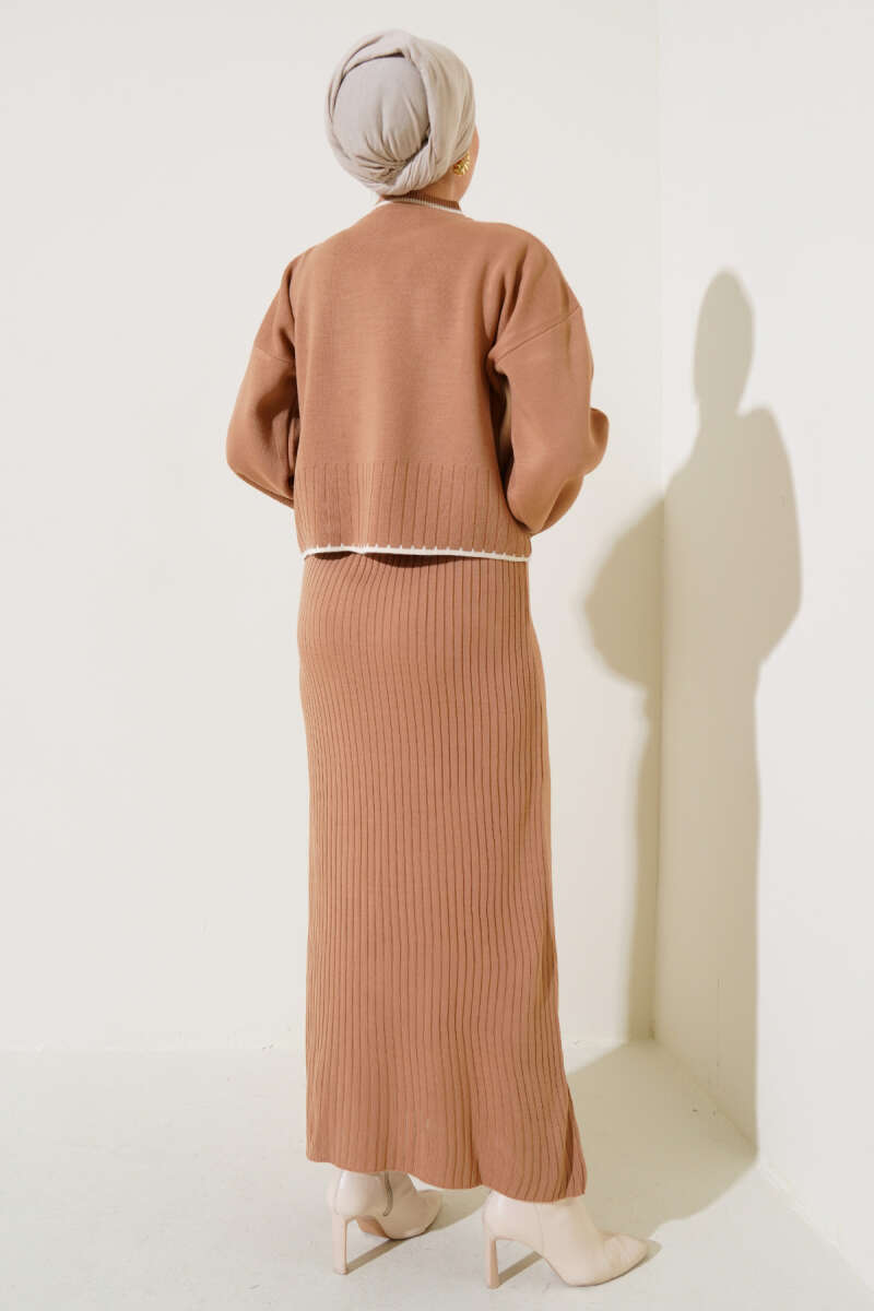 Fitilli Triko Kazak Jile İkili Takım Kahve
