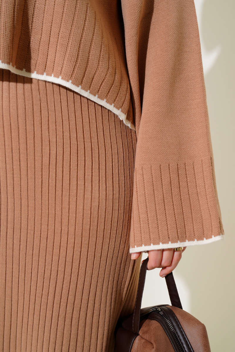 Balıkçı Yaka Fitilli Triko İkili Takım Kahve