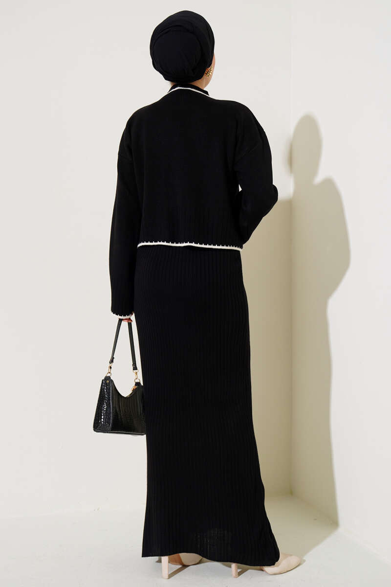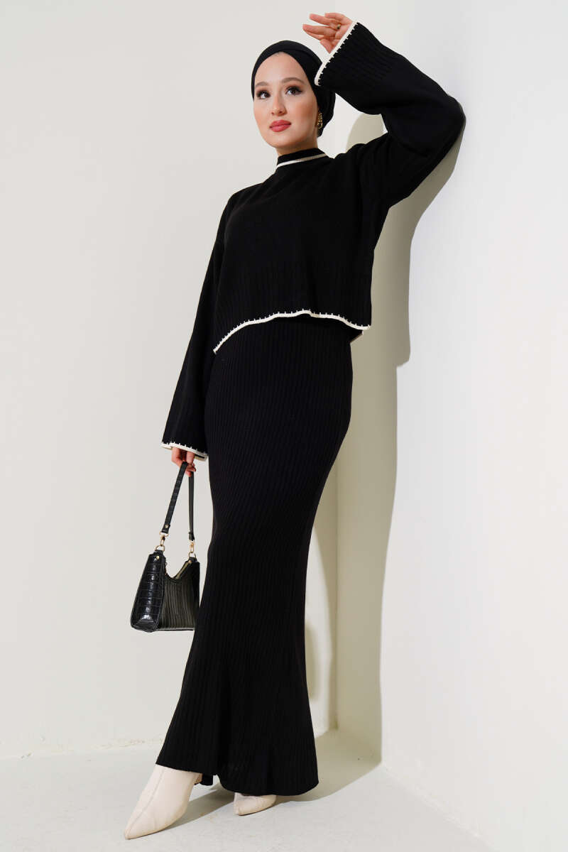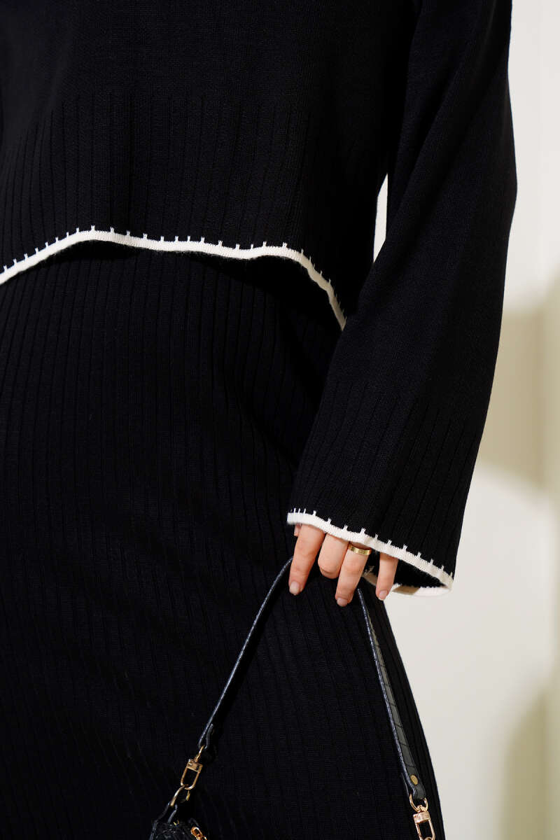 Çoban Dikişli Triko Tunik İkili Takım Siyah