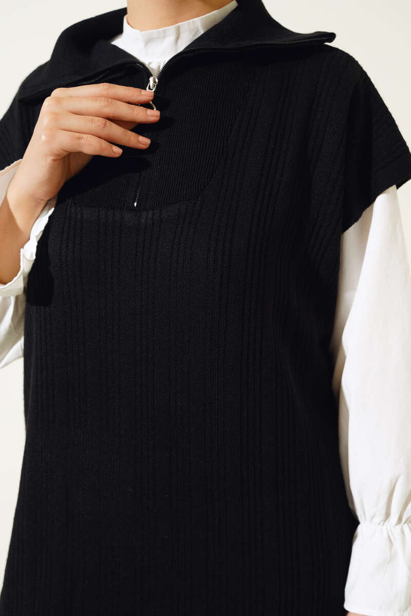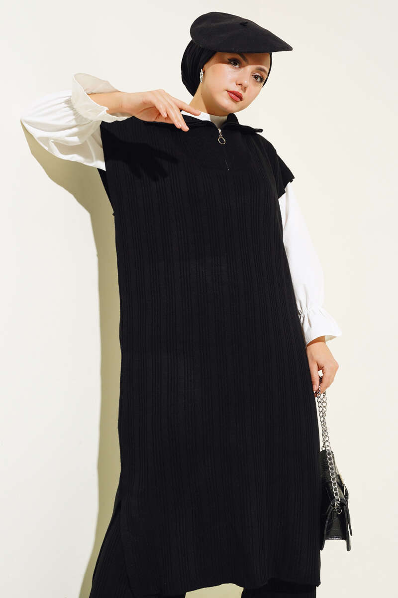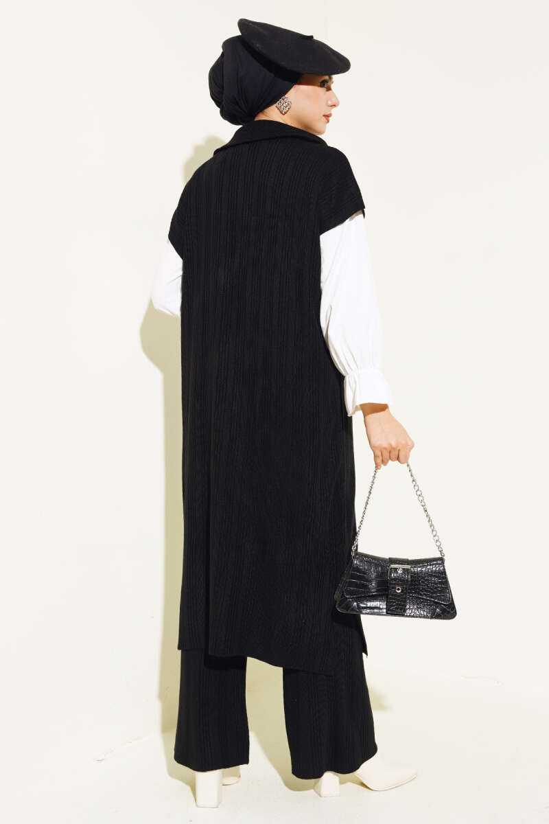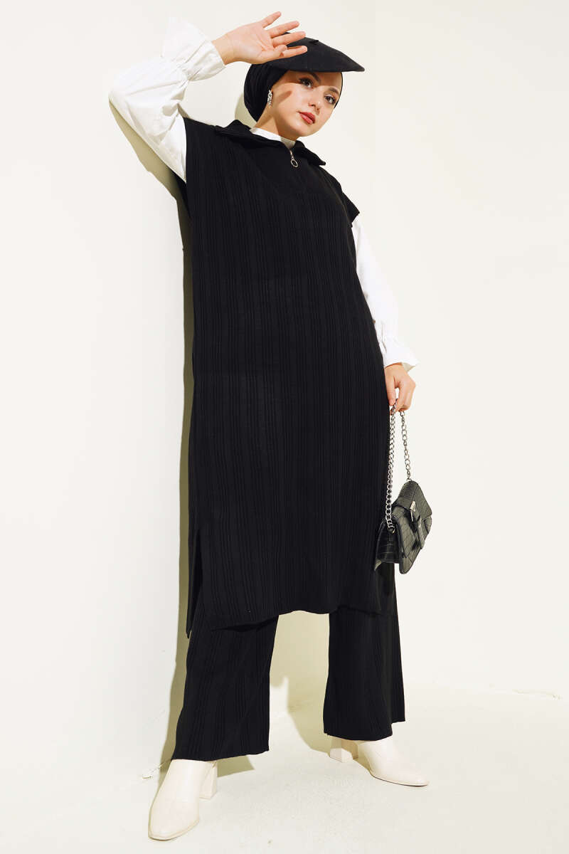 Balon Kol Balıkçı Yaka Triko İkili Takım Siyah