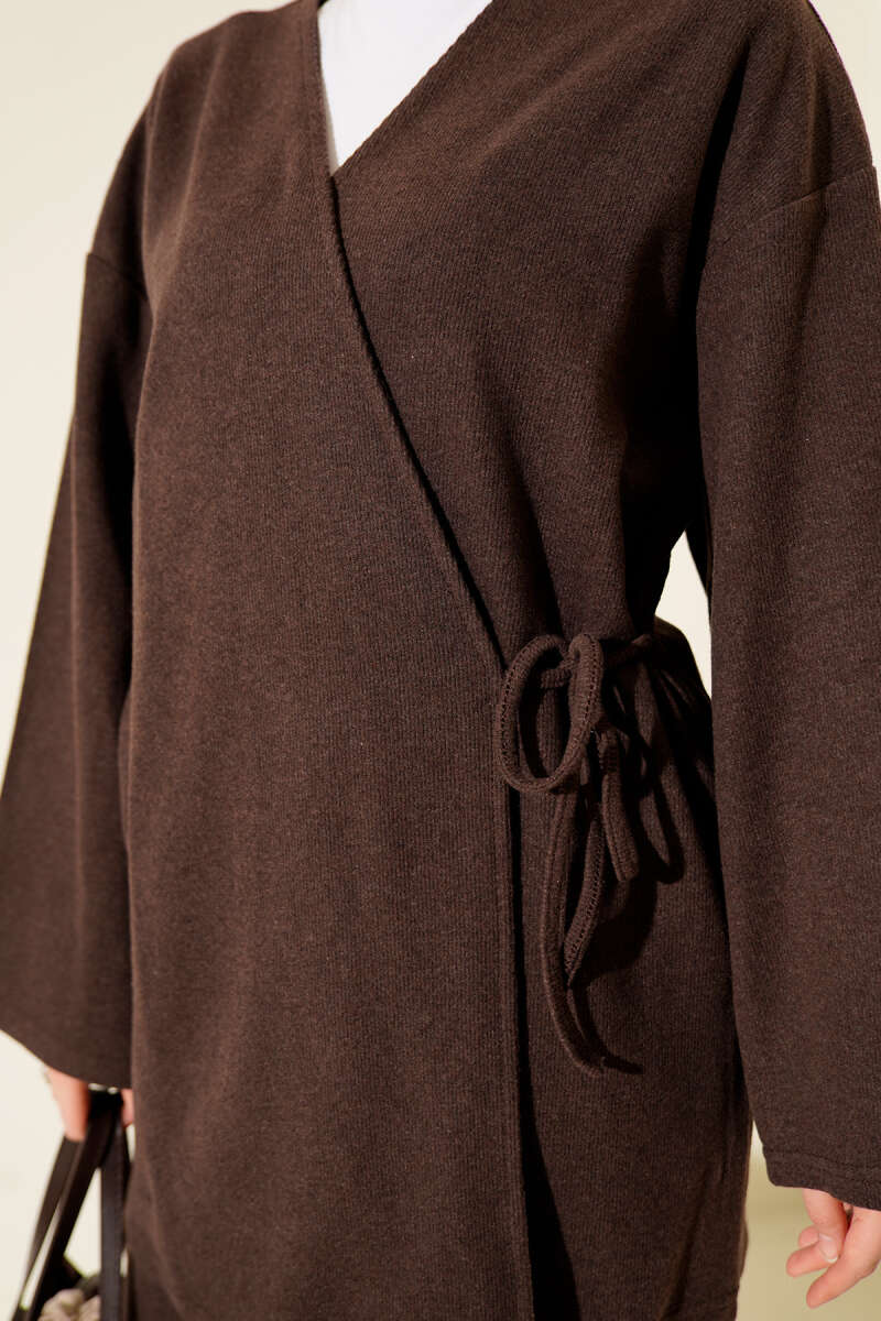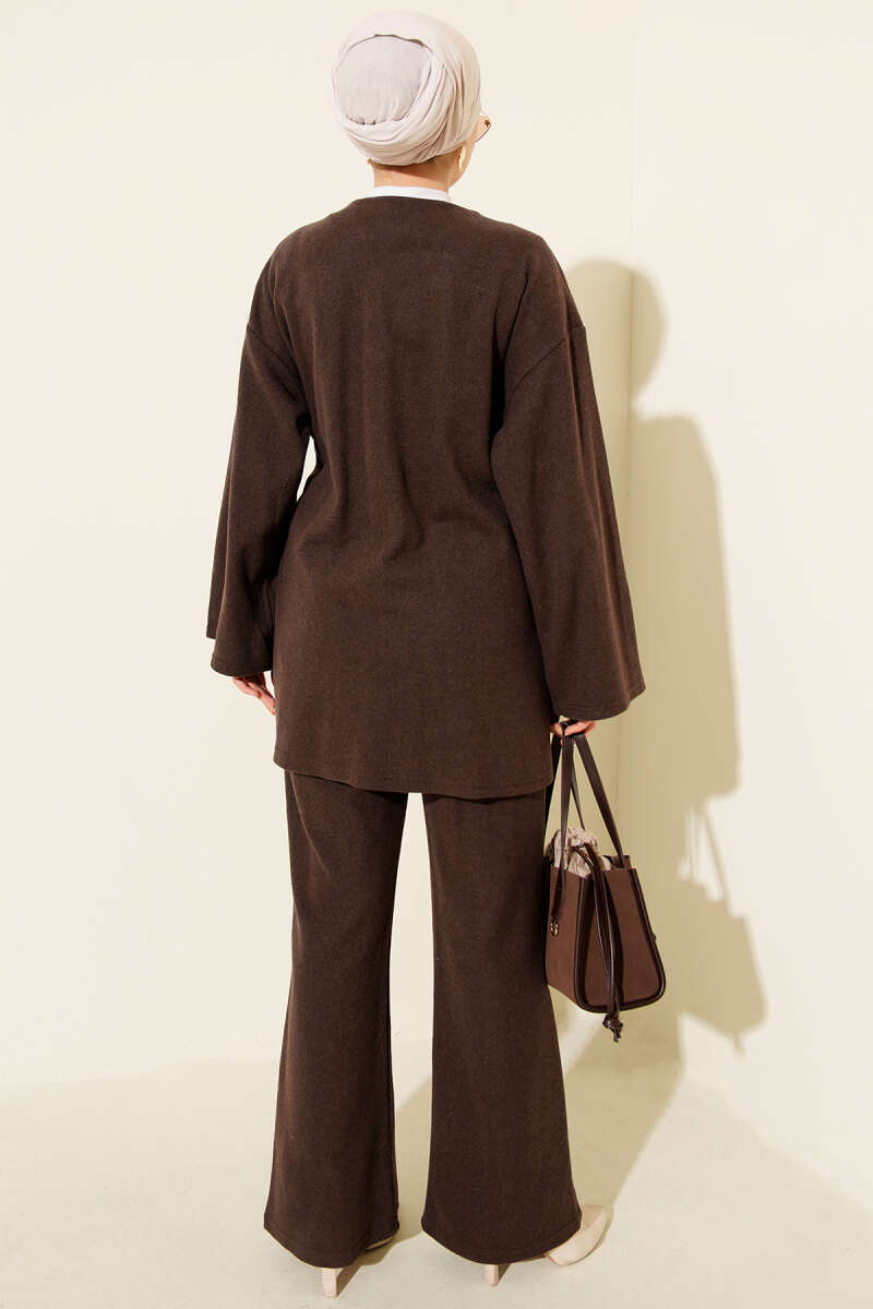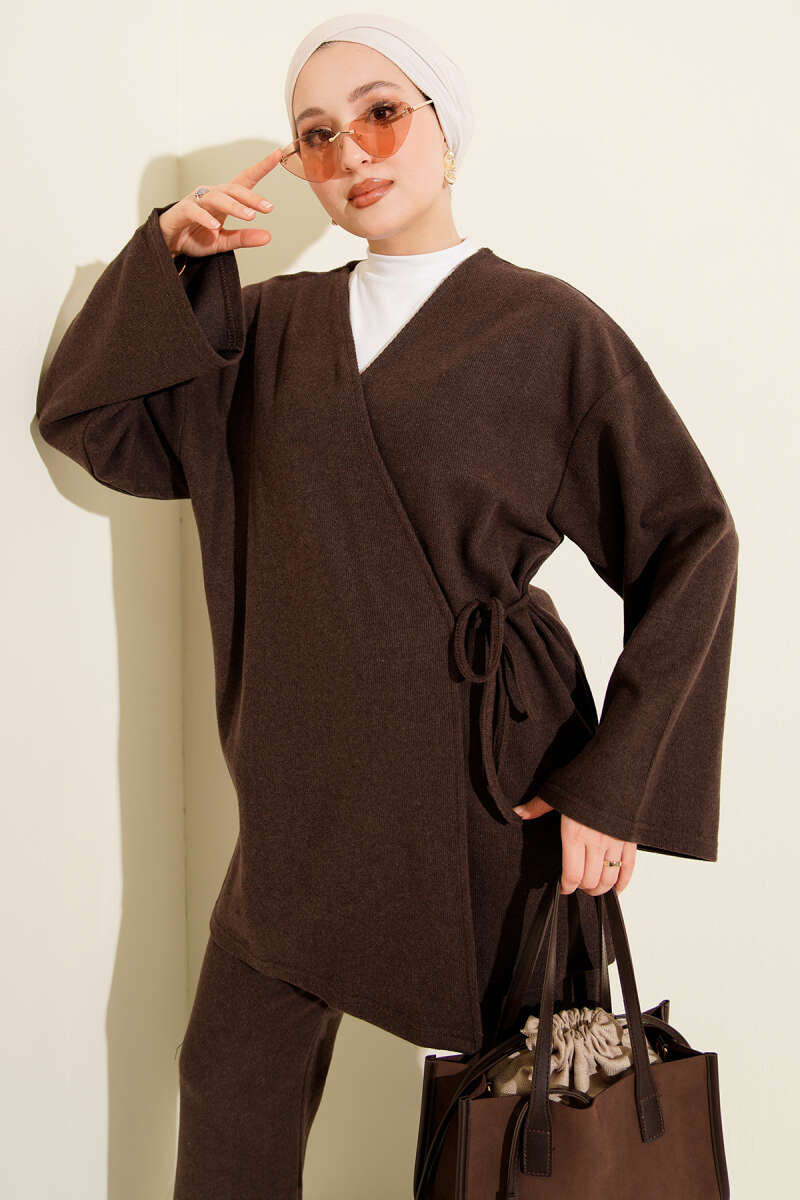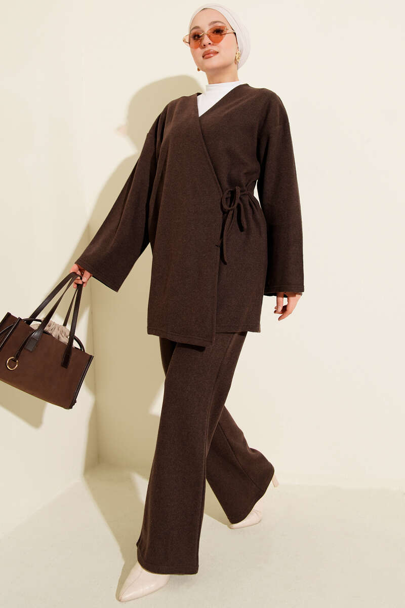 Kapüşonlu Kurdele Detaylı Loyşa İkili Takım Kahve