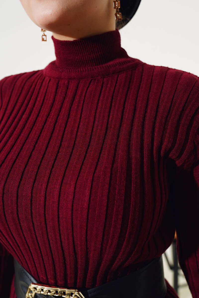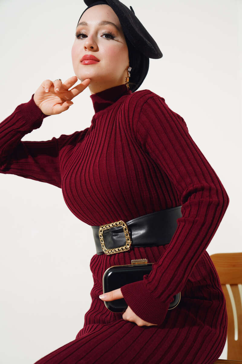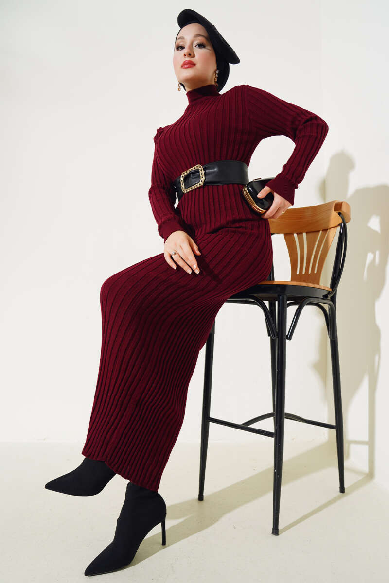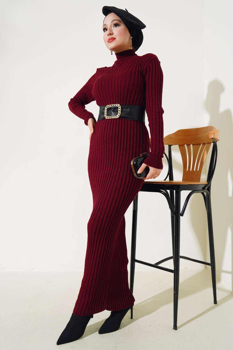 Kolları Fiyonk Detaylı Selanik Elbise Mürdüm