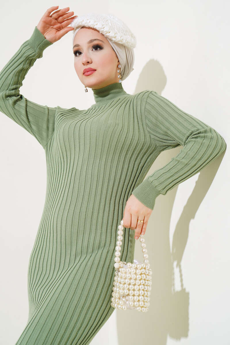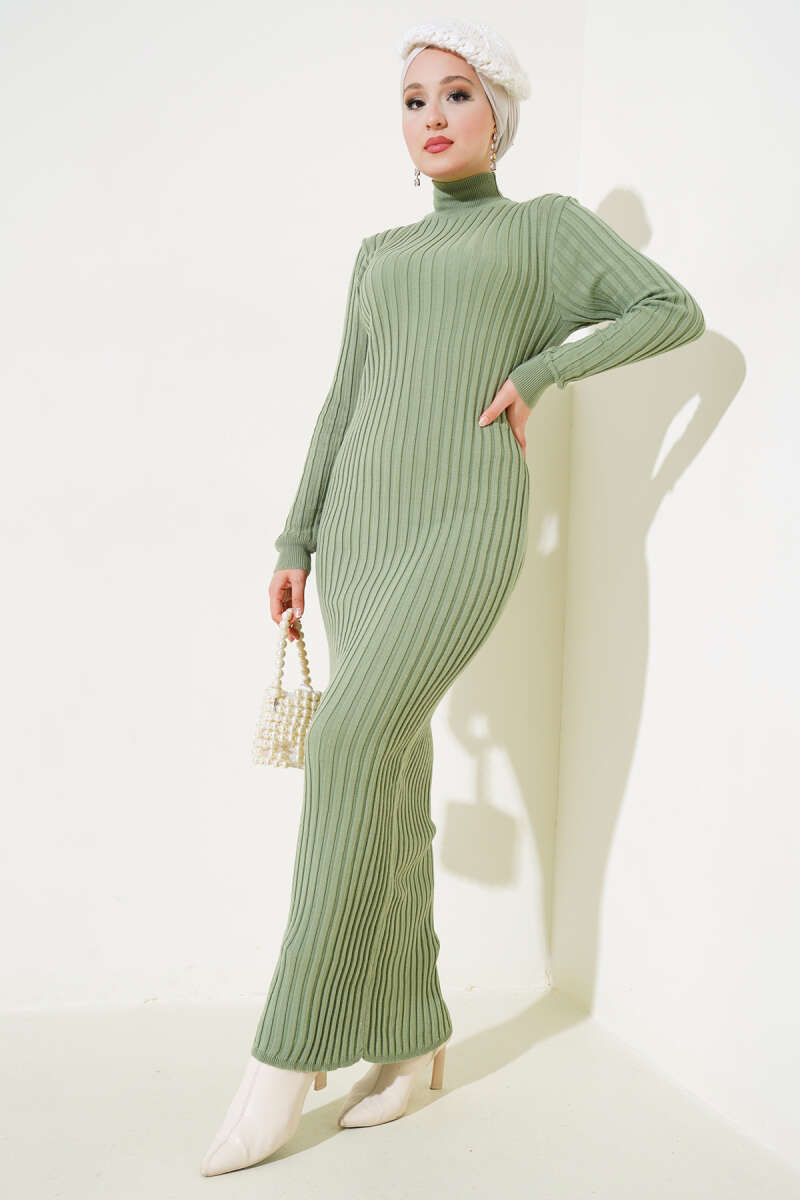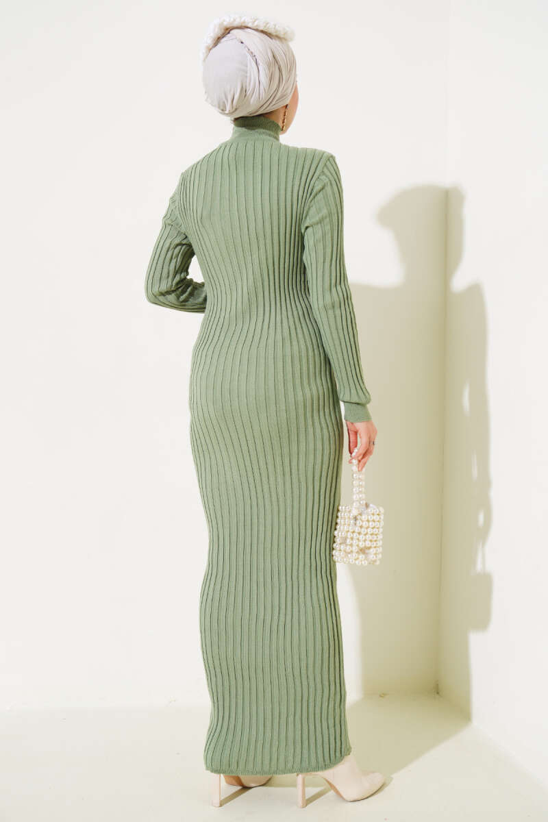 Kolları Fiyonk Detaylı Selanik Elbise Taş