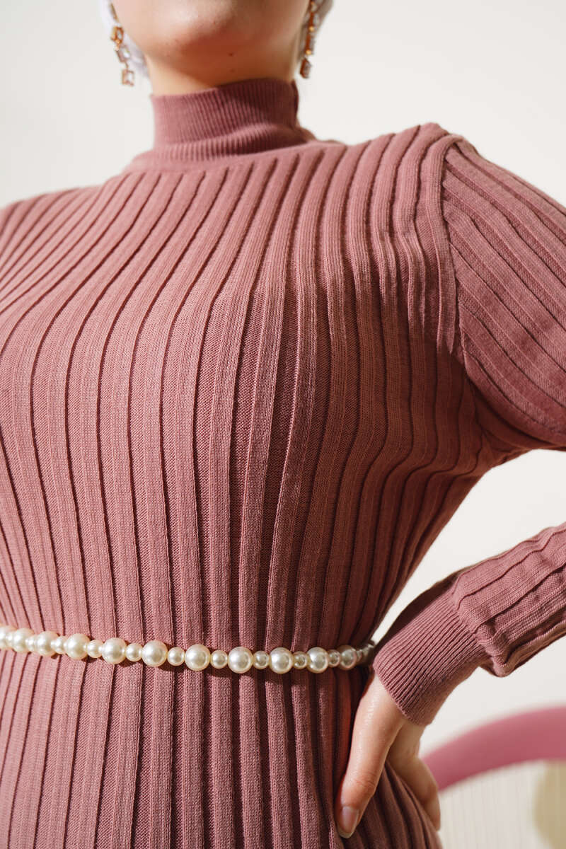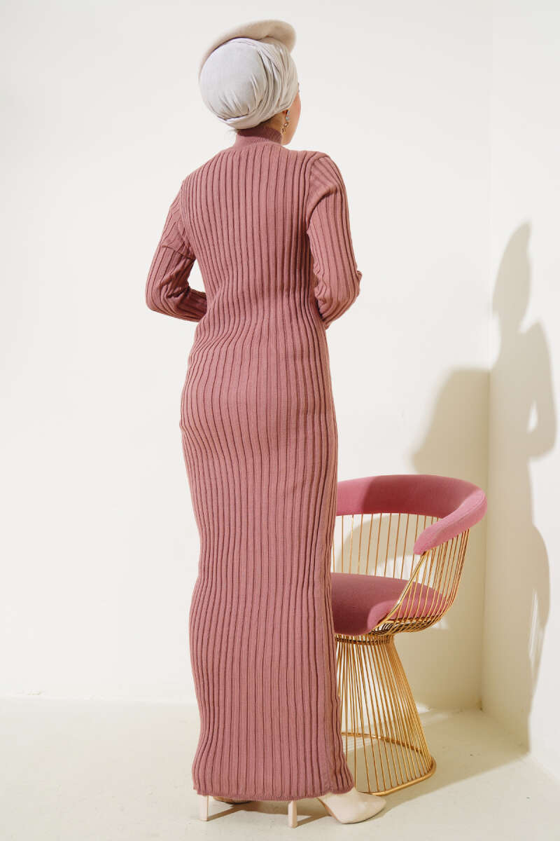 Kolları Fiyonk Detaylı Selanik Elbise Taş