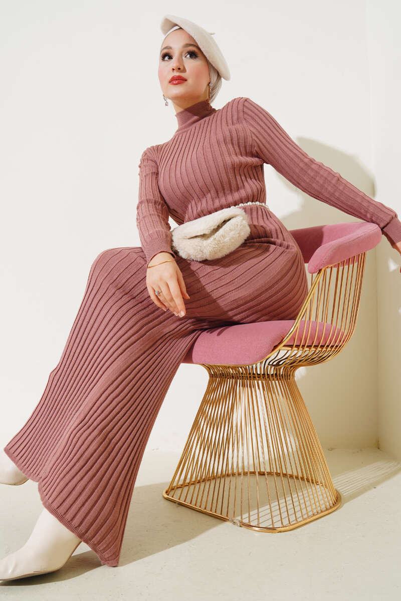 Kolları Fiyonk Detaylı Selanik Elbise Mürdüm
