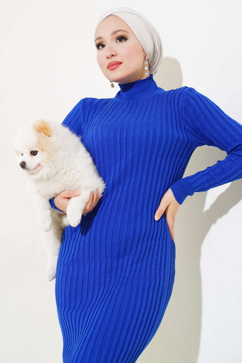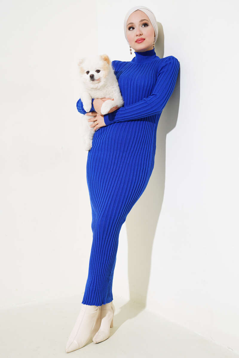 Kolları Fiyonk Detaylı Selanik Elbise Taş