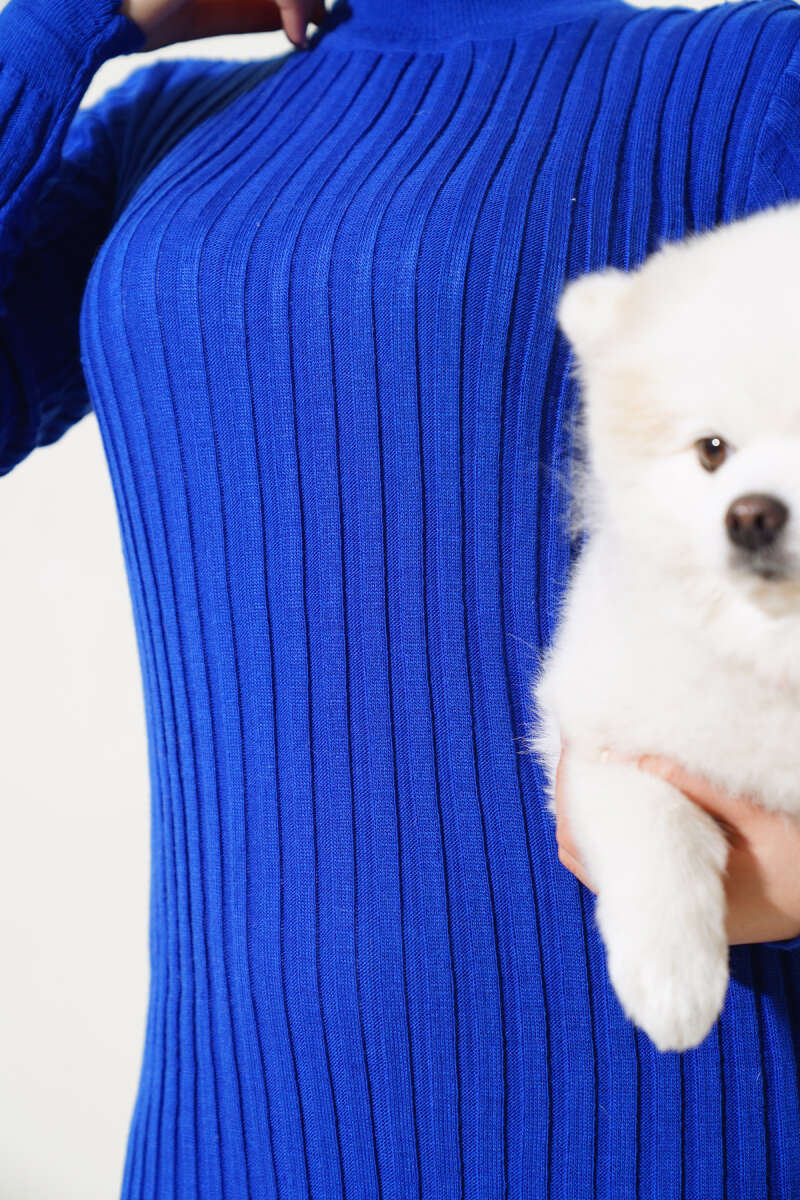 Çizgi Kabartmalı Triko Kazak Bebe Mavi