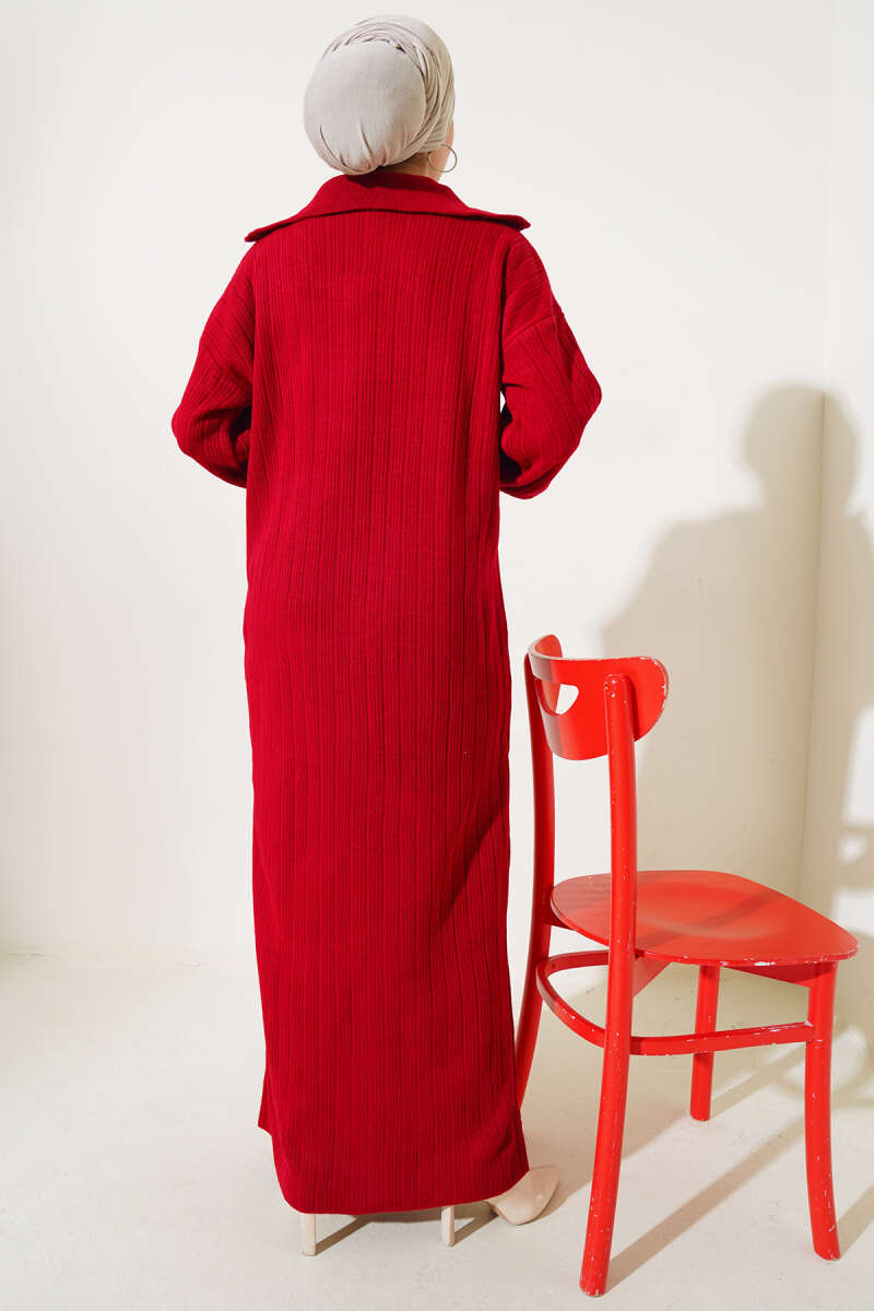 Örgü Büzgülü Uzun Triko Hırka Kahve