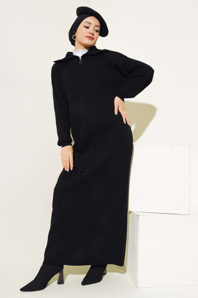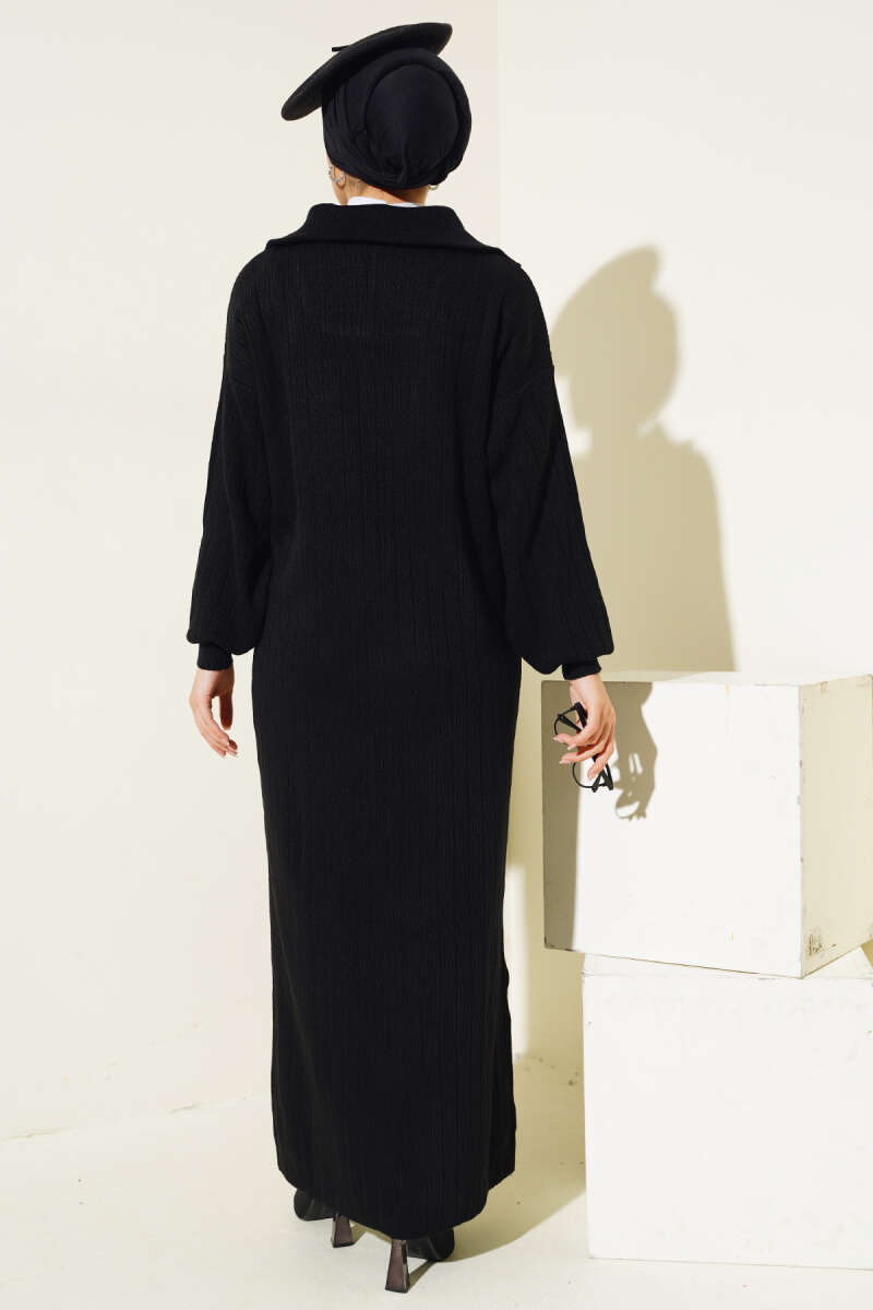 Gömlek Yaka Düğmeli Triko Elbise Siyah