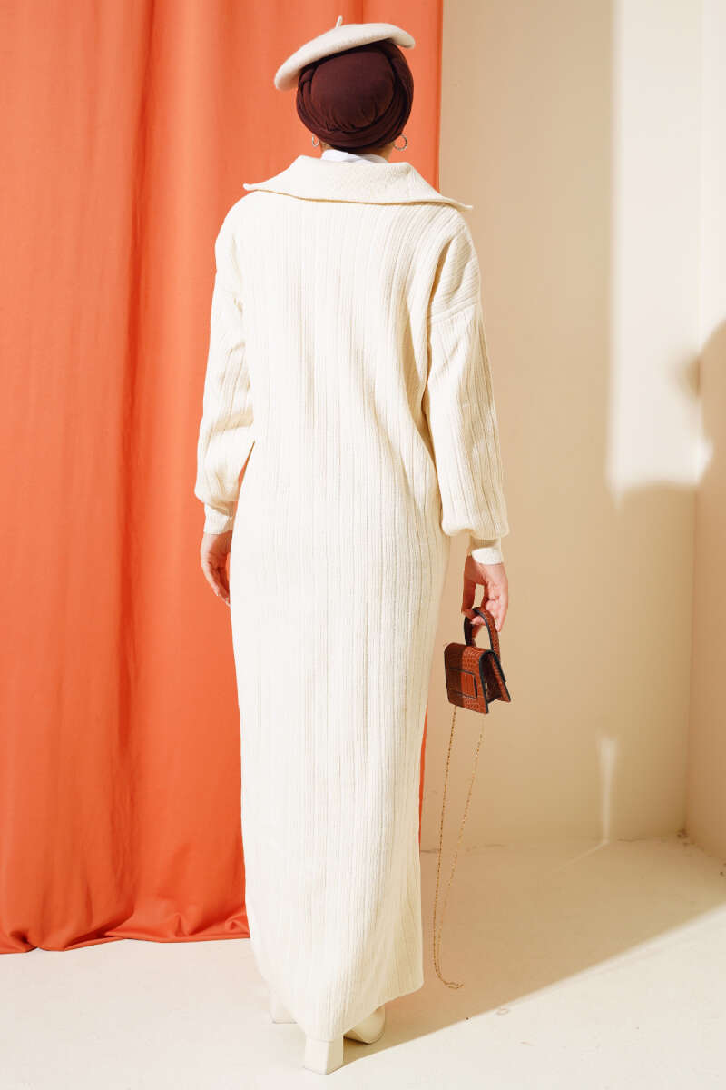 Örgü Büzgülü Uzun Triko Hırka Kahve