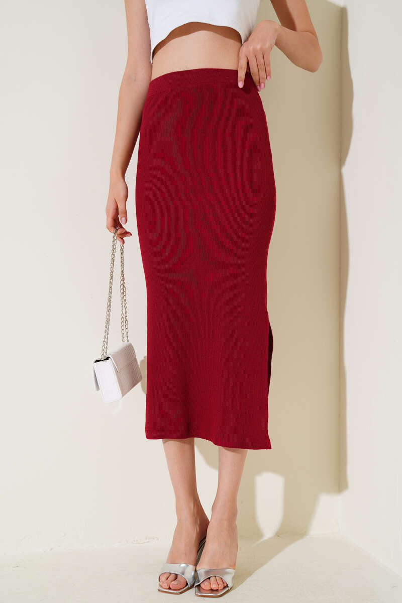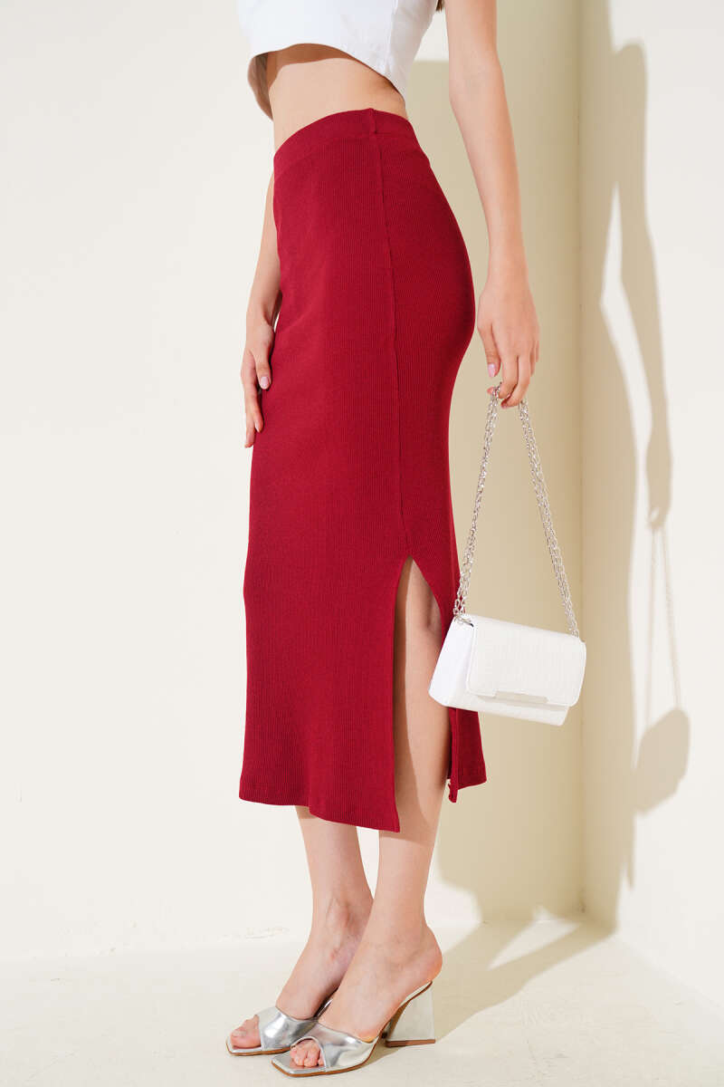 Kuşaklı V Yaka Şifon Midi Elbise Kırmızı