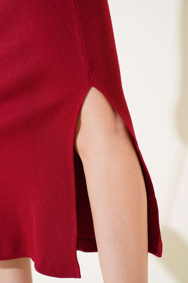 Fitilli Yırtmaçlı Midi Kalem Etek Bordo