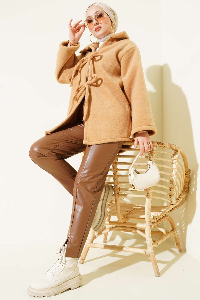 Önü Bağcıklı Keçe Ceket Ekru