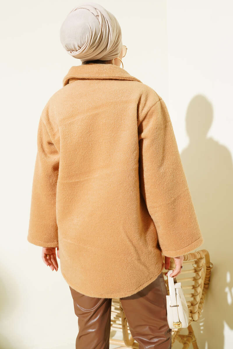 Hakim Yaka Çıtçıtlı Sakallı Ceket Bej